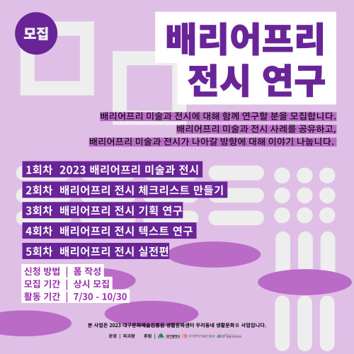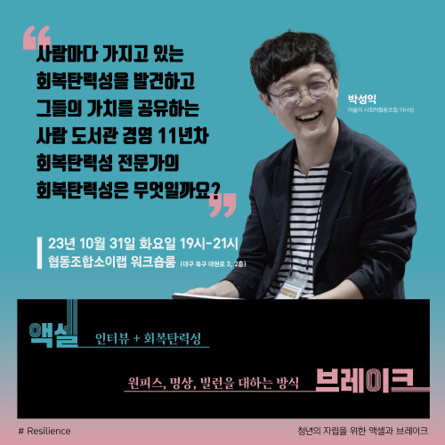 현재 모집 중 검색폼 대구광역시는 해당 페이지를 정보제공을 위한 목적으로 플랫폼을 운영하며, 각 게시글의 내용 및 운영방침에 대한 책임을 지지 않습니다. 대구광역시청년센터 사업 모아보기 전체보기 분야 : 전체 지원사업 채용/인턴/알바 기자단/서포터즈/자원봉사 공모전 교육/강연/토론 축제/공연/전시 커뮤니티활동 기타 정렬 : 전체 신규등록순 모집마감순 상태 : 전체 진행중 종료 기간 설정 검색 검색어 입력 꿀정보등록 누구나 쉽고 빠르게 청년정보를 등록하여 홍보할 수 있습니다. 전체선택 종료 [청년자립역량강화 워크숍] 아울러 박성익 대표님의 액셀과 브레이크는? 커뮤니티디자인 내마음은 콩밭 협동조합 ~ 2023.10.30 종료 [파괴왕] 💣파괴왕 배리어프리 전시 연구🖼 파괴왕 ~ 2023.10.30 종료 청년테마별 취업지원사업 (주)클라인 ~ 2023.10.30 종료 황금동 게더링 : 10월 커뮤니티 시네마 황금동 작업실 ~ 2023.10.29 대구광역시청년센터 종료 2023 청년마음돌봄사업 [집단상담 시즌4] 참여자 모집 대구광역시청년센터 ~ 2023.10.29 종료 [파괴왕] 제 3회 장벽파괴 영화제 파괴왕 ~ 2023.10.29 대구광역시청년센터 종료 2023 제9회 대구청년주간 '청년천하동성로' 대구광역시청년센터 ~ 2023.10.29 종료 All In One 취업아카데미 - 취업교육(7차) - 우경정보기술 대표이사 (주)클라인 ~ 2023.10.29 421 422 423 424 425 426 427 428 429 430