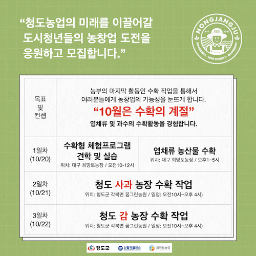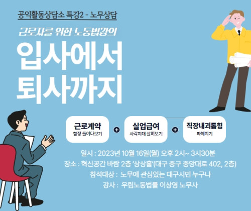 현재 모집 중 검색폼 대구광역시는 해당 페이지를 정보제공을 위한 목적으로 플랫폼을 운영하며, 각 게시글의 내용 및 운영방침에 대한 책임을 지지 않습니다. 대구광역시청년센터 사업 모아보기 전체보기 분야 : 전체 지원사업 채용/인턴/알바 기자단/서포터즈/자원봉사 공모전 교육/강연/토론 축제/공연/전시 커뮤니티활동 기타 정렬 : 전체 신규등록순 모집마감순 상태 : 전체 진행중 종료 기간 설정 검색 검색어 입력 꿀정보등록 누구나 쉽고 빠르게 청년정보를 등록하여 홍보할 수 있습니다. 전체선택 종료 시뮬레이션을 위한 설계(CATIA) 역량 강화 교육 첨단정보통신융합산업기술원 ~ 2023.10.16 종료 입사에서 퇴사까지-근로자를 위한 노동법강의 대구시민공익활동지원센터 ~ 2023.10.16 종료 청년들을 위한 인문집단프로그램 <생각사이-다> 청년21기 모집 (온라인 진행) 가톨릭대학교 김수환추기경연구소 ~ 2023.10.16 종료 [청년 자립을 위한 액셀과 브레이크] 메세지팩토리협동조합 노경민 대표님의 액셀과 브레이크 커뮤니티디자인 내마음은 콩밭 협동조합 ~ 2023.10.16 종료 <2023 도시문화캠프- 달성문화도시로 여행> 시민요가수업 신청 달성문화도시센터 ~ 2023.10.15 종료 농부의 마지막 활동 '수확' 2023년 마지막 파밍랩에 참가하세요. 농업회사법인 희망토 주식회사 ~ 2023.10.15 종료 2023 신속 제품제작지원 프로그램 3차 (모집연장) (재)대구테크노파크 스타트라인 ~ 2023.10.15 종료 2023 대구메이커페스타 (재)대구테크노파크 스타트라인 ~ 2023.10.15 431 432 433 434 435 436 437 438 439 440