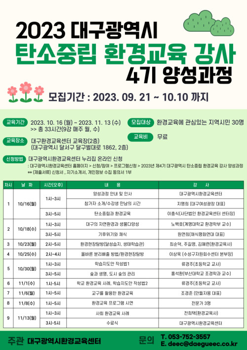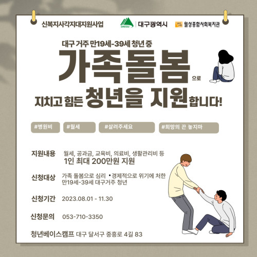현재 모집 중 검색폼 대구광역시는 해당 페이지를 정보제공을 위한 목적으로 플랫폼을 운영하며, 각 게시글의 내용 및 운영방침에 대한 책임을 지지 않습니다. 대구광역시청년센터 사업 모아보기 전체보기 분야 : 전체 지원사업 채용/인턴/알바 기자단/서포터즈/자원봉사 공모전 교육/강연/토론 축제/공연/전시 커뮤니티활동 기타 정렬 : 전체 신규등록순 모집마감순 상태 : 전체 진행중 종료 기간 설정 검색 검색어 입력 꿀정보등록 누구나 쉽고 빠르게 청년정보를 등록하여 홍보할 수 있습니다. 전체선택 종료 2023년 4기 대구광역시 탄소중립 환경교육 강사 양성과정 모집 대구광역시환경교육센터 ~ 2023.10.10 종료 2023 대구 그린라이프 페스타 (사)커뮤니티와경제 ~ 2023.10.10 종료 만19세-39세 가족돌봄으로 힘든 위기 청년을 지원합니다 월성종합사회복지관 ~ 2023.10.09 종료 SDGs 영화제 대구지속가능발전협의회 ~ 2023.10.07 종료 [차방책방] 최영미 시인 특강: 미투 이후의 삶 차방책방 ~ 2023.10.07 종료 2023 시어터 페스티벌 실.패.주.의 '제가 사랑한다고 말했던가요' 대구젊은연극동력회 ~ 2023.10.06 종료 청년 글로벌 개척단(CES 2024) 참가 학생 모집 (~10/6) 대구경북지역혁신플랫폼 전자정보기기사업단 ~ 2023.10.06 종료 채용확정형 - 염색기능인력 양성과정 교육생 모집 대구일자리전환지원센터 ~ 2023.10.06 441 442 443 444 445 446 447 448 449 450
