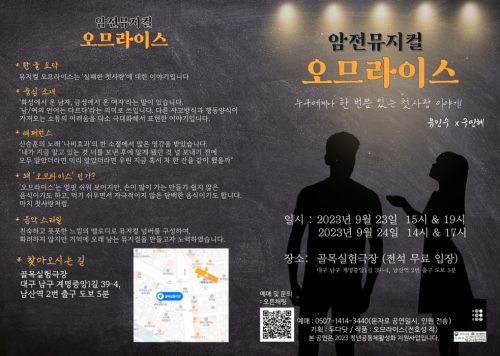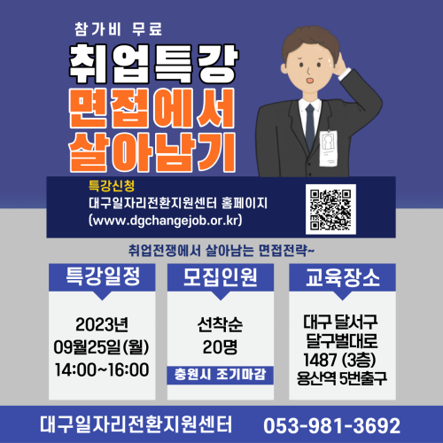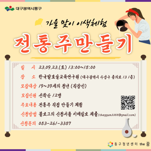 현재 모집 중 검색폼 대구광역시는 해당 페이지를 정보제공을 위한 목적으로 플랫폼을 운영하며, 각 게시글의 내용 및 운영방침에 대한 책임을 지지 않습니다. 대구광역시청년센터 사업 모아보기 전체보기 분야 : 전체 지원사업 채용/인턴/알바 기자단/서포터즈/자원봉사 공모전 교육/강연/토론 축제/공연/전시 커뮤니티활동 기타 정렬 : 전체 신규등록순 모집마감순 상태 : 전체 진행중 종료 기간 설정 검색 검색어 입력 꿀정보등록 누구나 쉽고 빠르게 청년정보를 등록하여 홍보할 수 있습니다. 전체선택 종료 CES 2024 경북대 RIS 공동관 참가 기업 모집 (~9/22) 대구경북지역혁신플랫폼 전자정보기기사업단 ~ 2023.09.22 종료 N・O・B In Focus (4) 사진가 황예지 아티스트 토크 낫온리북스 ~ 2023.09.22 종료 경북독립운동영화제 토크씨네 내마음은콩밭 협동조합 ~ 2023.09.22 종료 📢 가을맞이 이색체험 '전통주만들기' 대구 동구청년센the꿈 ~ 2023.09.22 종료 달서구 청년창업지원센터 입주기업 모집 달서구 청년창업지원센터 ~ 2023.09.22 종료 달서구 청년창업 벌크업 아이디어톤 경진대회 달서구 청년창업지원센터 ~ 2023.09.22 종료 [두다닷] 암전 뮤지컬 두다닷 ~ 2023.09.22 종료 취업특강 - 면접에서 살아남기 대구일자리전환지원센터 ~ 2023.09.22 441 442 443 444 445 446 447 448 449 450