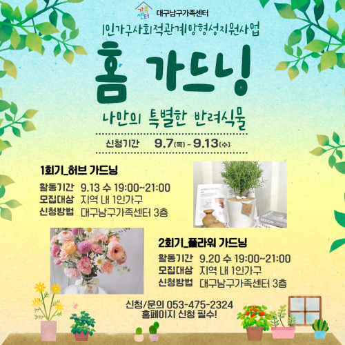현재 모집 중 검색폼 대구광역시는 해당 페이지를 정보제공을 위한 목적으로 플랫폼을 운영하며, 각 게시글의 내용 및 운영방침에 대한 책임을 지지 않습니다. 대구광역시청년센터 사업 모아보기 전체보기 분야 : 전체 지원사업 채용/인턴/알바 기자단/서포터즈/자원봉사 공모전 교육/강연/토론 축제/공연/전시 커뮤니티활동 기타 정렬 : 전체 신규등록순 모집마감순 상태 : 전체 진행중 종료 기간 설정 검색 검색어 입력 꿀정보등록 누구나 쉽고 빠르게 청년정보를 등록하여 홍보할 수 있습니다. 전체선택 종료 2023년 청장년 심리·정서안정 키트지원사업 "희망로드 With you" : 나만의 힐링텃밭 가꾸기 대구달서구가족센터 ~ 2023.09.15 종료 '해외로 도망친 철없는 신혼부부' 저자와 함께하는 랜선 책모임 세모람 ~ 2023.09.15 종료 지구별 파티(나의 외국인 친구를 소개해주세요)! 빠담빠담 ~ 2023.09.15 종료 취하주 시즌3 : 로컬 여행자 캠프 행정안전부, 영천시, 청년마을 취하리 ~ 2023.09.14 종료 [파괴왕] 배리어프리콘텐츠 체크리스트 만들기 모임 파괴왕 ~ 2023.09.13 종료 (대구남구가족센터) 1인가구 반려식물 만들기 '홈 가드닝' 대구남구가족센터 ~ 2023.09.13 종료 달서청년정책 포럼에 참여할 지역 청년 모집 대구광역시 달서구 ~ 2023.09.13 종료 수성구청년축제 '청년연합팀' 모집 수성구청년센터 ~ 2023.09.13 451 452 453 454 455 456 457 458 459 460