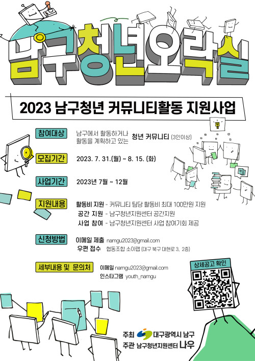 현재 모집 중 검색폼 대구광역시는 해당 페이지를 정보제공을 위한 목적으로 플랫폼을 운영하며, 각 게시글의 내용 및 운영방침에 대한 책임을 지지 않습니다. 대구광역시청년센터 사업 모아보기 전체보기 분야 : 전체 지원사업 채용/인턴/알바 기자단/서포터즈/자원봉사 공모전 교육/강연/토론 축제/공연/전시 커뮤니티활동 기타 정렬 : 전체 신규등록순 모집마감순 상태 : 전체 진행중 종료 기간 설정 검색 검색어 입력 꿀정보등록 누구나 쉽고 빠르게 청년정보를 등록하여 홍보할 수 있습니다. 전체선택 종료 '둔촌주공아파트, 대단지의 생애' 저자와 함께하는 랜선 책모임 세모람 ~ 2023.08.16 종료 비영리민간단체 오션캠퍼스 5기 스쿠버다이빙 오픈워터 팀원 모집(~8/16) 비영리민간단체 오션캠퍼스 ~ 2023.08.16 종료 [남구청년오락실] 남구 커뮤니티활동 지원사업 나우 남구청년센터 ~ 2023.08.15 종료 [대구 남구 토탈뷰티 제조/서비스 전문인력 양성 및 청년창업 활성화] 3기 모집!!! 대구테크노파크, 영남이공대학교, (주)리드로컬 ~ 2023.08.15 종료 [모집] 창업동아리에서 100억 매출까지! 달서구 청년창업지원센터 ~ 2023.08.14 종료 워킹홀리데이 교류 모임(숙소지원) [2023 모이자 코워홀러] 버킷 ~ 2023.08.14 종료 Job콘서트- 코레일&디트로취업선배 그리고일자리센터장 달서구청년센터 ~ 2023.08.13 종료 [한국산업인력공단] 해외 일경험(WELL) 프로그램 4차 청년 모집중! (~8/13) 한국산업인력공단 ~ 2023.08.13 471 472 473 474 475 476 477 478 479 480