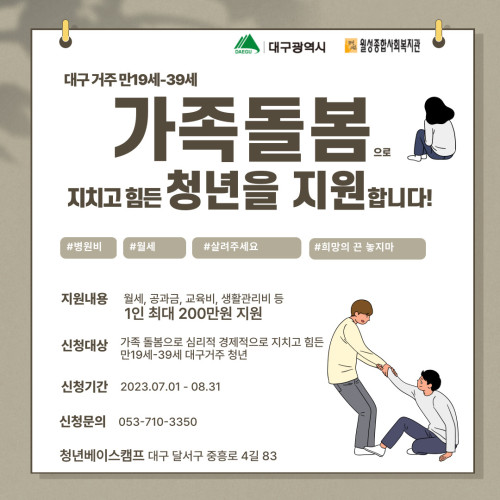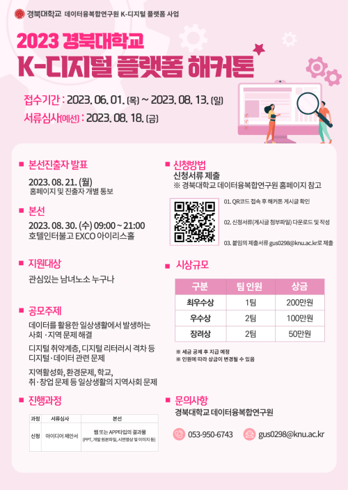현재 모집 중 검색폼 대구광역시는 해당 페이지를 정보제공을 위한 목적으로 플랫폼을 운영하며, 각 게시글의 내용 및 운영방침에 대한 책임을 지지 않습니다. 대구광역시청년센터 사업 모아보기 전체보기 분야 : 전체 지원사업 채용/인턴/알바 기자단/서포터즈/자원봉사 공모전 교육/강연/토론 축제/공연/전시 커뮤니티활동 기타 정렬 : 전체 신규등록순 모집마감순 상태 : 전체 진행중 종료 기간 설정 검색 검색어 입력 꿀정보등록 누구나 쉽고 빠르게 청년정보를 등록하여 홍보할 수 있습니다. 전체선택 종료 2023 경북대학교 K-디지털 플랫폼 해커톤 참여자 모집 경북대학교 데이터융복합연구원 ~ 2023.08.13 종료 만19세-39세 청년을 지원합니다 월성 ~ 2023.08.13 종료 대구 한 달 살이 ‘대굴대굴 대굴 온나(ON NA)’ 1기 참여 청년 모집 대구광역시/대구창조경제혁신센터 ~ 2023.08.13 종료 동친쌀롱 X 드론히어로K - 드론의 세계! 무한한 즐거움! 드론히어로K ~ 2023.08.13 종료 달서구 청년센터 DYT 페스티벌 달서구 청년센터 ~ 2023.08.12 종료 전문가가 풀어주는 MBTI 성격유형검사 나를위함 ~ 2023.08.11 종료 [서구 청년 커뮤니티 활성화] 티클래스 추가모집! 대구광역시 서구청 교육청소년과 ~ 2023.08.11 종료 D-Jobs 아카데미 프로젝트 참가자 모집 (~8/11) 대구경북지역혁신플랫폼 전자정보기기사업단 ~ 2023.08.11 471 472 473 474 475 476 477 478 479 480