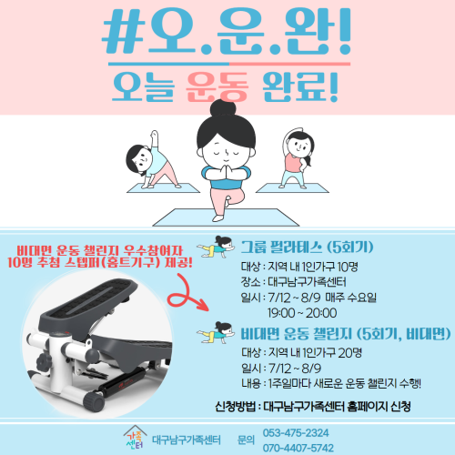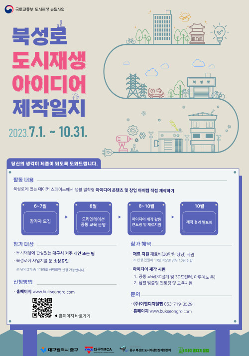 현재 모집 중 검색폼 대구광역시는 해당 페이지를 정보제공을 위한 목적으로 플랫폼을 운영하며, 각 게시글의 내용 및 운영방침에 대한 책임을 지지 않습니다. 대구광역시청년센터 사업 모아보기 전체보기 분야 : 전체 지원사업 채용/인턴/알바 기자단/서포터즈/자원봉사 공모전 교육/강연/토론 축제/공연/전시 커뮤니티활동 기타 정렬 : 전체 신규등록순 모집마감순 상태 : 전체 진행중 종료 기간 설정 검색 검색어 입력 꿀정보등록 누구나 쉽고 빠르게 청년정보를 등록하여 홍보할 수 있습니다. 전체선택 종료 2023 청장년 신체·정서적 건강 회복 지원사업 ‘희망로드 프로젝트’ 참가자 모집 대구달서구가족센터 ~ 2023.07.31 종료 커뮤니티 디자이너 커뮤니티 내마음은 콩밭 협동조합 ~ 2023.07.31 종료 「북성로 도시재생 아이디어 제작일지」 참여자 모집 메이커하우스 리움 ~ 2023.07.31 종료 [예약 오픈] 7월~8월 교육장 예약 (주)디지스타트업 인큐베이터 ~ 2023.07.31 종료 오늘 운동 완료! #오.운.완! 대구남구가족센터 ~ 2023.07.31 종료 [무료교육] 대구 ABB 융합창작소 기술융합형 문화예술교육 대구문화예술진흥원 ~ 2023.07.31 대구광역시청년센터 종료 [청년상담소] 직업선호도검사 상담 대구광역시청년센터 ~ 2023.07.31 종료 [수성구자원봉사센터] 사진찍는 플로깅 - 일상 속 자원봉사 실천 '올랑올랑' (온라인/비대면) 수성구자원봉사센터 ~ 2023.07.31 481 482 483 484 485 486 487 488 489 490