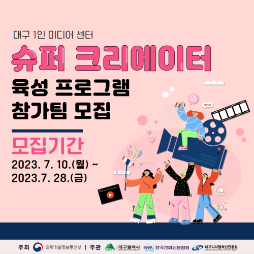 현재 모집 중 검색폼 대구광역시는 해당 페이지를 정보제공을 위한 목적으로 플랫폼을 운영하며, 각 게시글의 내용 및 운영방침에 대한 책임을 지지 않습니다. 대구광역시청년센터 사업 모아보기 전체보기 분야 : 전체 지원사업 채용/인턴/알바 기자단/서포터즈/자원봉사 공모전 교육/강연/토론 축제/공연/전시 커뮤니티활동 기타 정렬 : 전체 신규등록순 모집마감순 상태 : 전체 진행중 종료 기간 설정 검색 검색어 입력 꿀정보등록 누구나 쉽고 빠르게 청년정보를 등록하여 홍보할 수 있습니다. 전체선택 대구광역시청년센터 종료 2023 청년마음돌봄사업 [집단상담 시즌3] 참여자 모집 대구광역시청년센터 ~ 2023.07.30 종료 2023년 익산형 MVP 지원사업 익산시청 ~ 2023.07.30 종료 [알파라운드] 자기주도 학습모임지원 '자주모여’ 참가팀 모집(~7/30) 함께만드는세상 ~ 2023.07.30 종료 직장생활 만족도 향상 프로젝트 - 직장 내 괴롭힘 및 근로기준법 교육 진행 대구청년유니온 ~ 2023.07.29 종료 2023년 국내외 크라우드 펀딩 오픈 지원 사업 참가 기업 모집 (~7/28) 대구경북지역혁신플랫폼 전자정보기기사업단 ~ 2023.07.28 종료 대구 달성군의 이야기를 만화로! 달무드 참여자 모집 토핑 ~ 2023.07.28 종료 [독서모임] 물고기가 존재하지 않는다고? 나를위함 ~ 2023.07.28 종료 2023년 슈퍼 크리에이터 육성 프로그램 참가팀 모집 대구디지털혁신진흥원 ~ 2023.07.28 481 482 483 484 485 486 487 488 489 490