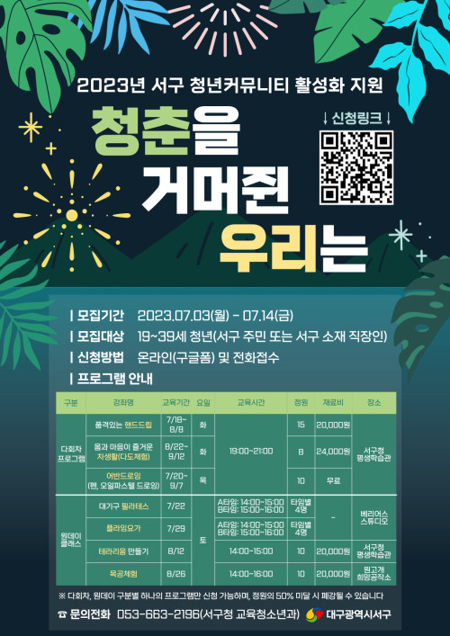 현재 모집 중 검색폼 대구광역시는 해당 페이지를 정보제공을 위한 목적으로 플랫폼을 운영하며, 각 게시글의 내용 및 운영방침에 대한 책임을 지지 않습니다. 대구광역시청년센터 사업 모아보기 전체보기 분야 : 전체 지원사업 채용/인턴/알바 기자단/서포터즈/자원봉사 공모전 교육/강연/토론 축제/공연/전시 커뮤니티활동 기타 정렬 : 전체 신규등록순 모집마감순 상태 : 전체 진행중 종료 기간 설정 검색 검색어 입력 꿀정보등록 누구나 쉽고 빠르게 청년정보를 등록하여 홍보할 수 있습니다. 전체선택 종료 대구노동권익센터 정책 모니터링단 모집 대구노동권익센터 ~ 2023.07.14 종료 「청춘을 거머쥔 우리는」1기 신청접수 대구광역시 서구 ~ 2023.07.14 종료 수성4가 주민을 위한 축제 수성새일여성센터 마을기업 ~ 2023.07.13 종료 2023년 하계 직무 역량 강화 프로그램 NCS 및 대기업 직무 적성 교육 수강생 모집 (~7/13) 대구경북지역혁신플랫폼 전자정보기기사업단 ~ 2023.07.13 종료 청년지원사업 <함께 그리는 항해지도> 참가자 추가 모집 범물종합사회복지관 ~ 2023.07.13 종료 '프로덕트 매니지먼트' 김영욱 저자와 함께하는 랜선 책모임 세모람도서관 ~ 2023.07.13 종료 2023 경상북도 사회적경제 활성화 포럼 개최 경상북도 사회적경제지원센터 ~ 2023.07.12 종료 저자와 께 세모람도서관 ~ 2023.07.12 491 492 493 494 495 496 497 498 499 500