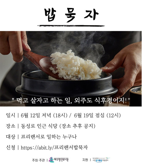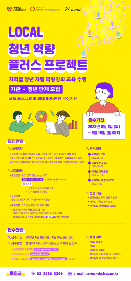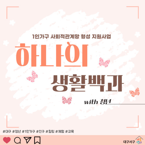 현재 모집 중 검색폼 대구광역시는 해당 페이지를 정보제공을 위한 목적으로 플랫폼을 운영하며, 각 게시글의 내용 및 운영방침에 대한 책임을 지지 않습니다. 대구광역시청년센터 사업 모아보기 전체보기 분야 : 전체 지원사업 채용/인턴/알바 기자단/서포터즈/자원봉사 공모전 교육/강연/토론 축제/공연/전시 커뮤니티활동 기타 정렬 : 전체 신규등록순 모집마감순 상태 : 전체 진행중 종료 기간 설정 검색 검색어 입력 꿀정보등록 누구나 쉽고 빠르게 청년정보를 등록하여 홍보할 수 있습니다. 전체선택 종료 프리랜서 밥묵자! 대구청년유니온 ~ 2023.06.19 종료 2023년 1인가구 사회적관계망 형성 지원사업 "하나의 생활백과" 프로그램 안내 대구서구가족센터 ~ 2023.06.19 종료 문경 세계명상마을 제2회 <청년명상힐링캠프> 안내 문경 세계명상마을 ~ 2023.06.18 대구광역시청년센터 종료 2023 청년마음돌봄사업 [심화상담 시즌2] 참여자 모집 대구광역시청년센터 ~ 2023.06.18 종료 [알파라운드] _로컬 청년 역량 플러스 프로젝트_ 기관 및 청년단체 모집 (사)함께만드는세상(사회연대은행) ~ 2023.06.18 종료 [소셜인턴십알파프로젝트] 소셜섹터 인턴십 참가자 모집 (~6/18) 함께만드는세상 ~ 2023.06.18 종료 [시네마투나잇] 삼삼오오 같이 모여 영화보는 밤 나를위함 ~ 2023.06.17 종료 문화이음-터 백일장 (체험프로그램+이벤트) 아울러사회적협동조합 ~ 2023.06.16 501 502 503 504 505 506 507 508 509 510