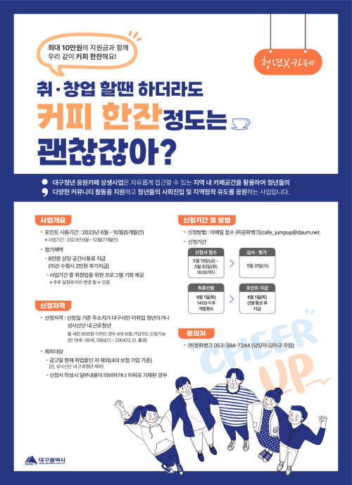 현재 모집 중 검색폼 대구광역시는 해당 페이지를 정보제공을 위한 목적으로 플랫폼을 운영하며, 각 게시글의 내용 및 운영방침에 대한 책임을 지지 않습니다. 대구광역시청년센터 사업 모아보기 전체보기 분야 : 전체 지원사업 채용/인턴/알바 기자단/서포터즈/자원봉사 공모전 교육/강연/토론 축제/공연/전시 커뮤니티활동 기타 정렬 : 전체 신규등록순 모집마감순 상태 : 전체 진행중 종료 기간 설정 검색 검색어 입력 꿀정보등록 누구나 쉽고 빠르게 청년정보를 등록하여 홍보할 수 있습니다. 전체선택 종료 [수성구자원봉사센터] 올랑올랑 - 찾아가는 플로깅! 수성구자원봉사센터 ~ 2023.05.31 종료 가상/증강현실 진로체험강사 양성과정 (2차) 한국여성과학기술인육성재단(WISET) ~ 2023.05.31 종료 (재)여성기업종합지원센터 대구센터 BI입주기업 모집 안내 (재)여성기업종합지원센터 대구센터 ~ 2023.05.31 종료 [2023 신규모집 / 교육장 대관] 대구 동성로 비즈니스센터 (주)디지스타트업 인큐베이터 ~ 2023.05.31 종료 [대구청년유니온] 지역일자리 정책탐사대 모집 대구청년유니온 ~ 2023.05.30 종료 2023 「대구청년 응원카페 상생사업」 참여청년 추가모집 (주)문화뱅크/대구광역시 ~ 2023.05.30 종료 [수성구자원봉사센터] 이야기 뜨개질 수성구자원봉사센터 ~ 2023.05.30 종료 6월 /아무에게 /편지쓰기 워크숍 아무의 방 ~ 2023.05.30 501 502 503 504 505 506 507 508 509 510