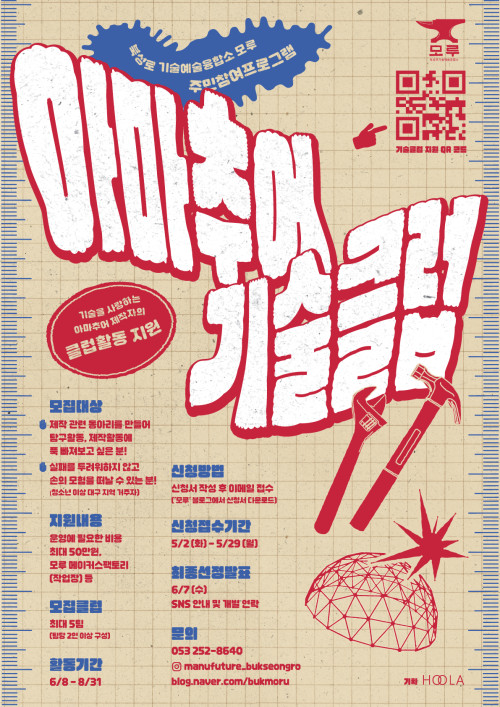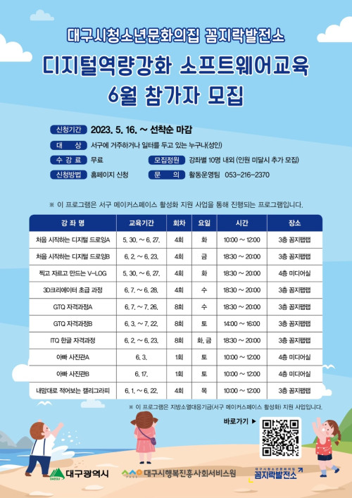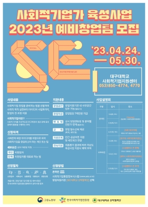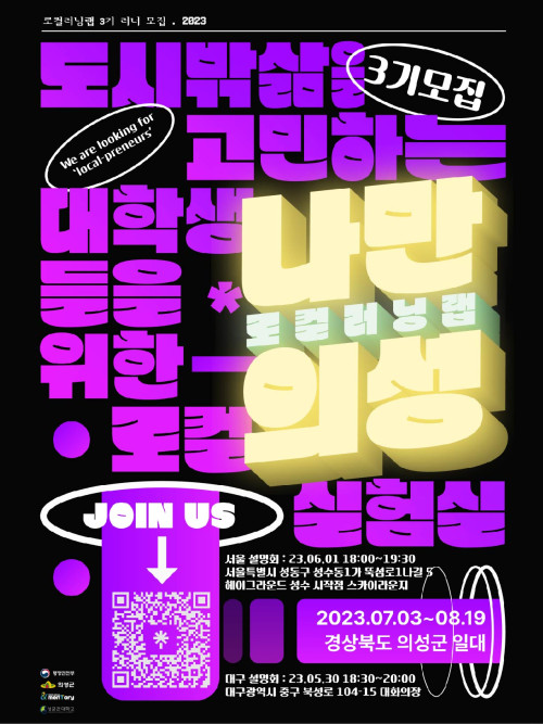 현재 모집 중 검색폼 대구광역시는 해당 페이지를 정보제공을 위한 목적으로 플랫폼을 운영하며, 각 게시글의 내용 및 운영방침에 대한 책임을 지지 않습니다. 대구광역시청년센터 사업 모아보기 전체보기 분야 : 전체 지원사업 채용/인턴/알바 기자단/서포터즈/자원봉사 공모전 교육/강연/토론 축제/공연/전시 커뮤니티활동 기타 정렬 : 전체 신규등록순 모집마감순 상태 : 전체 진행중 종료 기간 설정 검색 검색어 입력 꿀정보등록 누구나 쉽고 빠르게 청년정보를 등록하여 홍보할 수 있습니다. 전체선택 종료 디지털역량강화 소프트웨어교육 6월 참가자 모집 대구시청소년문화의집 꼼지락발전소 ~ 2023.05.30 종료 [사회적기업가 육성사업] 예비창업팀 모집 대구대학교 산학협력단 ~ 2023.05.30 종료 🔎도시 밖 삶을 고민하는 대학생을 위한 로컬 실험실, <로컬러닝랩> 3기 오프라인 설명회 사회적협동조합 menTory / 나만의-성 ~ 2023.05.29 종료 [서구청년정책네트워크] 발표회 참석자를 모집합니다! 서구청, 메세지팩토리협동조합 ~ 2023.05.29 종료 [서구청년정책네트워크] 발표회 참석자를 모집합니다! 서구청, 메세지팩토리협동조합 ~ 2023.05.29 종료 [서구청년정책네트워크] 발표회 참석자를 모집합니다! 서구청, 메세지팩토리협동조합 ~ 2023.05.29 종료 <나의 자그마한 책> 출판 워크숍 아무의 방 ~ 2023.05.29 종료 아마추어 기술클럽 모집 훌라 ~ 2023.05.29 511 512 513 514 515 516 517 518 519 520