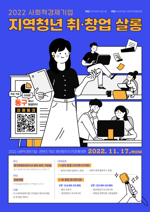 현재 모집 중 검색폼 대구광역시는 해당 페이지를 정보제공을 위한 목적으로 플랫폼을 운영하며, 각 게시글의 내용 및 운영방침에 대한 책임을 지지 않습니다. 대구광역시청년센터 사업 모아보기 전체보기 분야 : 전체 지원사업 채용/인턴/알바 기자단/서포터즈/자원봉사 공모전 교육/강연/토론 축제/공연/전시 커뮤니티활동 기타 정렬 : 전체 신규등록순 모집마감순 상태 : 전체 진행중 종료 기간 설정 검색 검색어 입력 꿀정보등록 누구나 쉽고 빠르게 청년정보를 등록하여 홍보할 수 있습니다. 전체선택 종료 청년소셜클럽 친환경분야 세미나 the green 커뮤니티와경제, 대구광역시 사회적경제지원센터 ~ 2022.11.18 종료 2022년 달서구 청년도전지원사업 월성종합사회복지관 청년도전지원사업본부 ~ 2022.11.18 종료 [청년 미래플랜 아카데미]이동진 평론가 초청 강연 변동일정 안내 대구광역시 서구청 교육청소년과 ~ 2022.11.18 종료 쓰기프로젝트 Vol.2 허밍프로젝트 ~ 2022.11.18 종료 대구 지역청년 취창업 살롱 대구광역시 동구청, (사)대구동구사회적경제협의회 ~ 2022.11.17 종료 11월 쓰레기 없는 로컬장터 바리바리 📩BARI BARI v5.고마운 꿀벌🐝 대구녹색소비자연대 ~ 2022.11.17 종료 나의 첫 NFT 시작하기 스튜디오 저녁 (드리밍대구 Local Verse Lab 팀) ~ 2022.11.16 종료 🐝꿀벌 연대 이야기@댄스위드비🐝 대구녹색소비자연대 ~ 2022.11.16 551 552 553 554 555 556 557 558 559 560