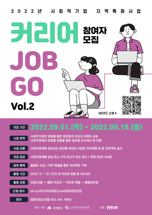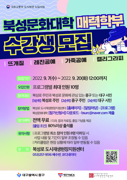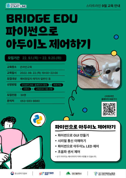 현재 모집 중 검색폼 대구광역시는 해당 페이지를 정보제공을 위한 목적으로 플랫폼을 운영하며, 각 게시글의 내용 및 운영방침에 대한 책임을 지지 않습니다. 대구광역시청년센터 사업 모아보기 전체보기 분야 : 전체 지원사업 채용/인턴/알바 기자단/서포터즈/자원봉사 공모전 교육/강연/토론 축제/공연/전시 커뮤니티활동 기타 정렬 : 전체 신규등록순 모집마감순 상태 : 전체 진행중 종료 기간 설정 검색 검색어 입력 꿀정보등록 누구나 쉽고 빠르게 청년정보를 등록하여 홍보할 수 있습니다. 전체선택 종료 가족사업 아이디어 공모전 '달서 같이의 가(家)치' 대구달서구가족센터 ~ 2022.09.21 종료 대구 최초 NFT 프로젝트 민팅 <코드네임D> 스튜디오 저녁 (팔레트 스튜디오) ~ 2022.09.20 종료 북성문화대학 매력학부 수강생 모집 북성로 도시재생현장지원센터 ~ 2022.09.20 종료 파이썬으로 아두이노 제어하기 (재)대구테크노파크 스타트라인 ~ 2022.09.20 종료 [색채미술심리] 스트레스 해방일지 스튜디오 저녁 (팔레트 스튜디오) ~ 2022.09.19 종료 [이모지 토크콘서트 소식 안내] 이모지 ~ 2022.09.19 종료 [직무체험] 2022 사회적경제 ‘커리어 잡고 vol.2’ 참여 청년 모집 대구광역시/대구광역시사회적기업협의회 ~ 2022.09.19 종료 [무료교육]업사이클 트렌드 맞춤형 소잉디자이너 창업 인큐베이팅 사업 달구벌여성인력개발센터 ~ 2022.09.19 581 582 583 584 585 586 587 588 589 590