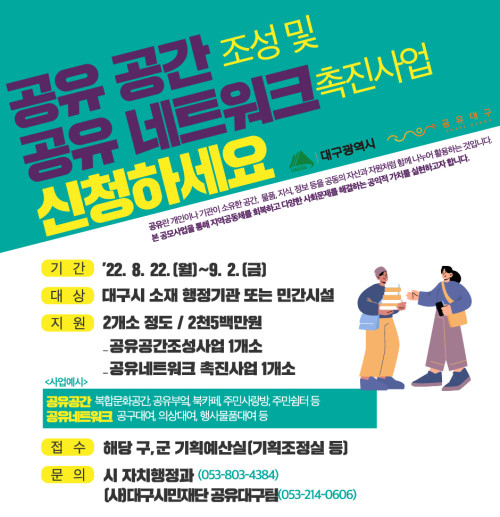 현재 모집 중 검색폼 대구광역시는 해당 페이지를 정보제공을 위한 목적으로 플랫폼을 운영하며, 각 게시글의 내용 및 운영방침에 대한 책임을 지지 않습니다. 대구광역시청년센터 사업 모아보기 전체보기 분야 : 전체 지원사업 채용/인턴/알바 기자단/서포터즈/자원봉사 공모전 교육/강연/토론 축제/공연/전시 커뮤니티활동 기타 정렬 : 전체 신규등록순 모집마감순 상태 : 전체 진행중 종료 기간 설정 검색 검색어 입력 꿀정보등록 누구나 쉽고 빠르게 청년정보를 등록하여 홍보할 수 있습니다. 전체선택 종료 2022 코드포대구 참가자(펠로우 및 시민활동가) 모집 (재)대구테크노파크 ~ 2022.09.04 종료 「나의 창업제품 제작기 in 북성로」참여자 모집(~9.4(일)까지) 주식회사 이엘디지털팹 ~ 2022.09.04 대구광역시청년센터 종료 2022 대구청년주간 '대구청년가요제' 참가자 모집 대구광역시청년센터 ~ 2022.09.04 종료 제4회 수성구청년축제 up&up '청년밴드 경연대회' 참여단체(밴드) 모집 수성구청년센터 ~ 2022.09.04 종료 [동친쌀롱]사건은 식후에 벌어진다. ВСЁ [브쇼] ~ 2022.09.03 종료 「2022 여성 UP 엑스포」개최 엑스코 ~ 2022.09.03 종료 2022년 달서구 청년도전지원사업 월성종합사회복지관 청년도전지원사업본부 ~ 2022.09.02 종료 공유공간 조성 및 공유네트워크촉진사업 지원 2차 공개모집 대구시 자치행정과 ~ 2022.09.02 591 592 593 594 595 596 597 598 599 600