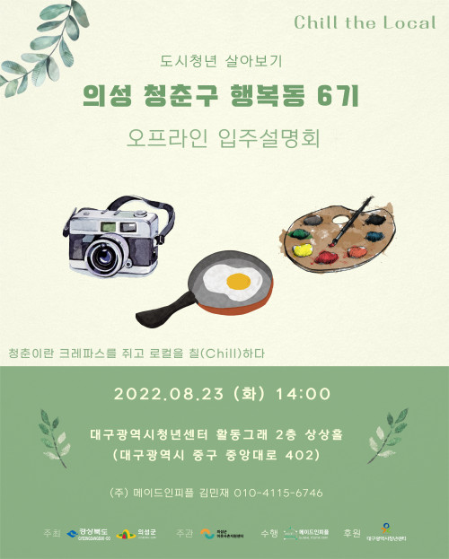 현재 모집 중 검색폼 대구광역시는 해당 페이지를 정보제공을 위한 목적으로 플랫폼을 운영하며, 각 게시글의 내용 및 운영방침에 대한 책임을 지지 않습니다. 대구광역시청년센터 사업 모아보기 전체보기 분야 : 전체 지원사업 채용/인턴/알바 기자단/서포터즈/자원봉사 공모전 교육/강연/토론 축제/공연/전시 커뮤니티활동 기타 정렬 : 전체 신규등록순 모집마감순 상태 : 전체 진행중 종료 기간 설정 검색 검색어 입력 꿀정보등록 누구나 쉽고 빠르게 청년정보를 등록하여 홍보할 수 있습니다. 전체선택 종료 2022 우공이산 인문도서관 콰타드림랩 ~ 2022.08.25 종료 비거니즘의 시선으로 대구 보기 다양한움직임; 다움 ~ 2022.08.23 종료 청년예술가와 함께하는 상상만개+ 친구가 예술가 한국문화예술교육진흥원 ~ 2022.08.23 종료 청춘구행복동 6기 오프라인 입주 설명회 경상북도, 의성군 주최 / 의성군 이웃사촌지원센터 주관 / 메이드인피플 수행 ~ 2022.08.23 종료 2022 대구경북청년아카데미 대구광역시, 대구신문(주) ~ 2022.08.23 종료 [3차 공고 상시 모집] 2022 스마트 공유공간 시스템 지원 사업 추가 모집 대구시민재단 공유대구사업팀 ~ 2022.08.23 종료 [색채미술심리] 회사에 치였다면? 스튜디오 저녁 (팔레트 스튜디오) ~ 2022.08.22 종료 창업경쟁력강화 '2022 C-Academy 수강생모집' 대구창조경제혁신센터 ~ 2022.08.22 591 592 593 594 595 596 597 598 599 600
