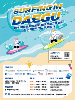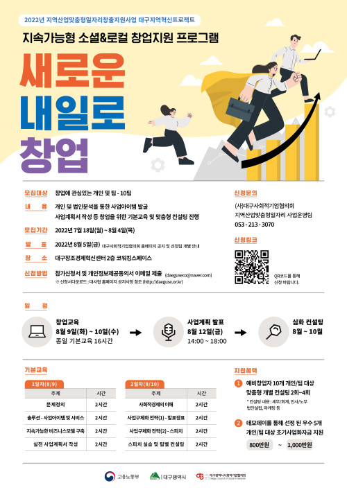 현재 모집 중 검색폼 대구광역시는 해당 페이지를 정보제공을 위한 목적으로 플랫폼을 운영하며, 각 게시글의 내용 및 운영방침에 대한 책임을 지지 않습니다. 대구광역시청년센터 사업 모아보기 전체보기 분야 : 전체 지원사업 채용/인턴/알바 기자단/서포터즈/자원봉사 공모전 교육/강연/토론 축제/공연/전시 커뮤니티활동 기타 정렬 : 전체 신규등록순 모집마감순 상태 : 전체 진행중 종료 기간 설정 검색 검색어 입력 꿀정보등록 누구나 쉽고 빠르게 청년정보를 등록하여 홍보할 수 있습니다. 전체선택 종료 지속가능형 소셜&로컬 창업지원 프로그램 <새로운 내일로 창UP> (사)대구광역시사회적기업협의회 ~ 2022.08.04 종료 취업 취약청년층 발굴지원 'Cheer-Up!!' 참가자 추가모집 동구청년센터the꿈 ~ 2022.08.03 종료 2022 경산 도시재생대학 [우리마을 축제학교] (~8/3) 메세지팩토리협동조합 ~ 2022.08.03 종료 [동친쌀롱] 글로 아무모여 멤버 모집 아무의 방 ~ 2022.08.02 종료 2022 대구 국제회의 전문가 BE-Planner 양성 과정 대구컨벤션뷰로 ~ 2022.08.01 종료 2022 대구문학관 문학안내원 모집 대구문학관 ~ 2022.08.01 종료 [ 취업/창업 ] 「2022 청년귀환 채널구축 사업」 취업 지원프로그램 <서핑인대구>🏄🏻♂ 재모집(~8/1) 대구창조경제혁신센터 ~ 2022.08.01 종료 [재공고]한국수자원공사 사내카페 위탁 운영 청년사업자 모집 한국수자원공사 ~ 2022.08.01 601 602 603 604 605 606 607 608 609 610
