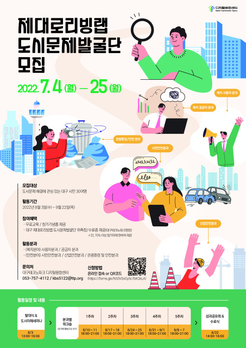 현재 모집 중 검색폼 대구광역시는 해당 페이지를 정보제공을 위한 목적으로 플랫폼을 운영하며, 각 게시글의 내용 및 운영방침에 대한 책임을 지지 않습니다. 대구광역시청년센터 사업 모아보기 전체보기 분야 : 전체 지원사업 채용/인턴/알바 기자단/서포터즈/자원봉사 공모전 교육/강연/토론 축제/공연/전시 커뮤니티활동 기타 정렬 : 전체 신규등록순 모집마감순 상태 : 전체 진행중 종료 기간 설정 검색 검색어 입력 꿀정보등록 누구나 쉽고 빠르게 청년정보를 등록하여 홍보할 수 있습니다. 전체선택 종료 「2022년 소셜벤처 엑셀러레이팅 및 해외진출 사업」 스타트업 모집 공고 대구창조경제혁신센터 ~ 2022.07.25 종료 SW융합클러스터 2.0 - 제대로리빙랩 도시문제발굴단 시민 참가자 모집 (재)대구테크노파크 ~ 2022.07.25 종료 HuStar 대구혁신아카데미 6기 교육생 모집 공고 대경혁신인재양성프로젝트 추진단 ~ 2022.07.25 종료 2022 청년도전지원사업 <젊핑> 시즌2 참여자 모집 대구청년센터 ~ 2022.07.25 종료 대구 북구 청년 웹작가 양성학교 참가자 모집 대구광역시 북구청 ~ 2022.07.24 종료 2022 워라밸 청년기자단 9기 모집 대구여성가족재단 / 대구일생활균형지원센터 ~ 2022.07.24 종료 [7월 한 달 돌아보기] 회고록 작성 워크샵 아무의 방 ~ 2022.07.23 종료 2022년 달서구 청년도전지원사업 월성종합사회복지관 청년도전지원사업본부 ~ 2022.07.22 611 612 613 614 615 616 617 618 619 620