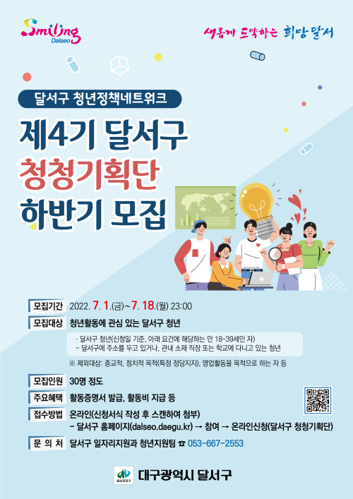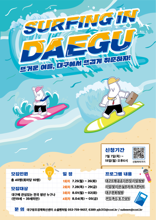 현재 모집 중 검색폼 대구광역시는 해당 페이지를 정보제공을 위한 목적으로 플랫폼을 운영하며, 각 게시글의 내용 및 운영방침에 대한 책임을 지지 않습니다. 대구광역시청년센터 사업 모아보기 전체보기 분야 : 전체 지원사업 채용/인턴/알바 기자단/서포터즈/자원봉사 공모전 교육/강연/토론 축제/공연/전시 커뮤니티활동 기타 정렬 : 전체 신규등록순 모집마감순 상태 : 전체 진행중 종료 기간 설정 검색 검색어 입력 꿀정보등록 누구나 쉽고 빠르게 청년정보를 등록하여 홍보할 수 있습니다. 전체선택 종료 「2022 청년귀환 채널구축 사업」 <서핑인대구> 참가자 모집 대구창조경제혁신센터 ~ 2022.07.18 종료 제4기 달서구 청청기획단 하반기 모집 달서구청 ~ 2022.07.18 종료 청년금융가이더 컨텐츠 제작교육을 진행합니다! 컨텐츠 제작에 관심있는 청년들 함께해요 ~ 대구청년연대은행 디딤 ~ 2022.07.17 종료 [추가모집] 청년들의 금융고민! 함꼐 해결할 <청년금융가이더> 를 모집합니다. 대구청년연대은행 디딤 ~ 2022.07.17 종료 [청춘:네비] 경로를 재탐색합니다 시즌2 "경로를 이탈했습니다" 내마음은 콩밭 협동조합 ~ 2022.07.17 종료 적층 제조 최적 설계 기술 무료 교육(Abaqus) 경북대학교 첨단정보통신융합산업기술원 ~ 2022.07.17 종료 2022년 달서구 청년도전지원사업 월성종합사회복지관 청년도전지원사업본부 ~ 2022.07.15 종료 2022년 달서구 1인가구 사회관계망 형성 사업 '1인가구 동아리 참여자 모집' 대구달서구가족센터 ~ 2022.07.15 611 612 613 614 615 616 617 618 619 620