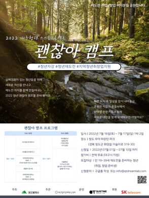 현재 모집 중 검색폼 대구광역시는 해당 페이지를 정보제공을 위한 목적으로 플랫폼을 운영하며, 각 게시글의 내용 및 운영방침에 대한 책임을 지지 않습니다. 대구광역시청년센터 사업 모아보기 전체보기 분야 : 전체 지원사업 채용/인턴/알바 기자단/서포터즈/자원봉사 공모전 교육/강연/토론 축제/공연/전시 커뮤니티활동 기타 정렬 : 전체 신규등록순 모집마감순 상태 : 전체 진행중 종료 기간 설정 검색 검색어 입력 꿀정보등록 누구나 쉽고 빠르게 청년정보를 등록하여 홍보할 수 있습니다. 전체선택 종료 2022 괜찮아 청년 캠프 주최: 대구광역시 주관:대구창조경제혁신센터 ~ 2022.07.10 종료 대구N맥페스티벌 대구N맥페스티벌 ~ 2022.07.10 종료 아름다운 대구 청년 전태일의 향기 (주)뷰티인사이드 ~ 2022.07.10 대구광역시청년센터 종료 2022 대구청년주간 '기획존+청년팝업존 운영단체 모집공고[양식수정] 대구광역시청년센터 ~ 2022.07.10 종료 북성로 도시재생현장지원센터 코디네이터를 모집합니다! 대구 중구 북성로 도시재생현장지원센터 ~ 2022.07.10 종료 2022년 달서구 청년도전지원사업 월성종합사회복지관 청년도전지원사업본부 ~ 2022.07.08 종료 A.I 스마트 산업 청년 취업 지원 프로그램 주식회사 코잡 ~ 2022.07.08 종료 N맥 다크투어 with 다움 대구N맥페스티벌 ~ 2022.07.06 611 612 613 614 615 616 617 618 619 620
