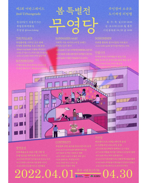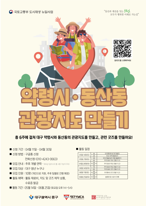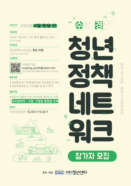 현재 모집 중 검색폼 대구광역시는 해당 페이지를 정보제공을 위한 목적으로 플랫폼을 운영하며, 각 게시글의 내용 및 운영방침에 대한 책임을 지지 않습니다. 대구광역시청년센터 사업 모아보기 전체보기 분야 : 전체 지원사업 채용/인턴/알바 기자단/서포터즈/자원봉사 공모전 교육/강연/토론 축제/공연/전시 커뮤니티활동 기타 정렬 : 전체 신규등록순 모집마감순 상태 : 전체 진행중 종료 기간 설정 검색 검색어 입력 꿀정보등록 누구나 쉽고 빠르게 청년정보를 등록하여 홍보할 수 있습니다. 전체선택 종료 2022 대한민국 캠핑대전 캠핑대전 사무국 ~ 2022.05.01 종료 2022년 랄랄라 라디오 제작 교육 울산시청자미디어센터, 성서공동체FM ~ 2022.04.30 종료 나를 이해하는 첫걸음 MBTI 특강 수성구청년센터 ~ 2022.04.30 종료 [대구 모집] 대구 약령시, 동산동 관광지도 만들기 참여자 모집 (~4/30) 대구 동산동, 약령시 도시재생현장지원센터 ~ 2022.04.30 종료 청년 정신건강 정보 및 도움기관 정보 제공 대구광역자살예방센터 ~ 2022.04.30 종료 <지구당> 𝘾𝙝𝙖𝙧𝙞𝙩𝙮 𝙎𝙝𝙤𝙥 & 𝙍𝙚𝙛𝙞𝙡𝙡 𝙎𝙩𝙖𝙩𝙞𝙤𝙣 지구당 ~ 2022.04.30 종료 🌸봄 특별전 무영당🌸 무영당 ~ 2022.04.30 종료 2022 수·경 청년정책네트워크 참여자 모집 수성구청년센터 ~ 2022.04.30 641 642 643 644 645 646 647 648 649 650