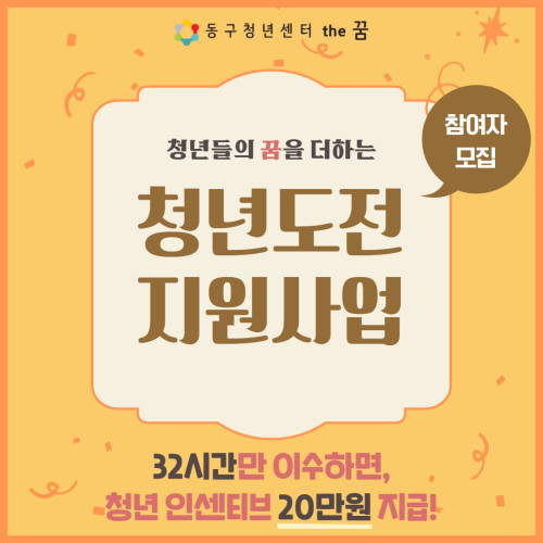 현재 모집 중 검색폼 대구광역시는 해당 페이지를 정보제공을 위한 목적으로 플랫폼을 운영하며, 각 게시글의 내용 및 운영방침에 대한 책임을 지지 않습니다. 대구광역시청년센터 사업 모아보기 전체보기 분야 : 전체 지원사업 채용/인턴/알바 기자단/서포터즈/자원봉사 공모전 교육/강연/토론 축제/공연/전시 커뮤니티활동 기타 정렬 : 전체 신규등록순 모집마감순 상태 : 전체 진행중 종료 기간 설정 검색 검색어 입력 꿀정보등록 누구나 쉽고 빠르게 청년정보를 등록하여 홍보할 수 있습니다. 전체선택 종료 [취향의 숲] 4월 프로그램 안내 취향의 숲 ~ 2022.04.30 종료 NO.1 공유오피스 대구 동성로 비즈니스 센터 (주)디지스타트업 인큐베이터 ~ 2022.04.30 종료 2022년 대구광역시 동구 청년도전지원사업 대구 동구청년센터 the꿈 ~ 2022.04.29 종료 2022년 달서구 청년도전지원사업 월성종합사회복지관 청년도전지원사업본부 ~ 2022.04.29 종료 2022년 달서구 청년도전지원사업 월성종합사회복지관 청년도전지원사업본부 ~ 2022.04.29 종료 [대구관광재단X한국자전거나라] 대구인물기행 심용환 역사학자와 함께하는 토크콘서트 한국자전거나라 ~ 2022.04.29 종료 C-Seed 육성프로그램 참여기업모집 대구창조경제혁신센터 ~ 2022.04.29 종료 2022년 대구광역시 동구 청년도전지원사업 대구 동구청년센터the꿈 ~ 2022.04.29 641 642 643 644 645 646 647 648 649 650