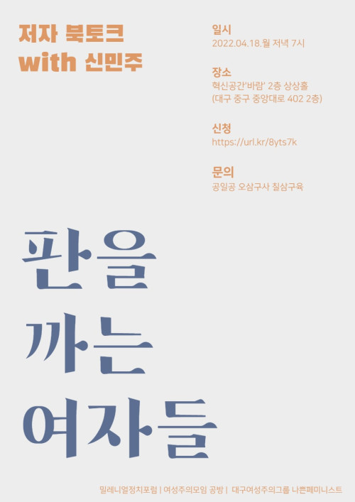 현재 모집 중 검색폼 대구광역시는 해당 페이지를 정보제공을 위한 목적으로 플랫폼을 운영하며, 각 게시글의 내용 및 운영방침에 대한 책임을 지지 않습니다. 대구광역시청년센터 사업 모아보기 전체보기 분야 : 전체 지원사업 채용/인턴/알바 기자단/서포터즈/자원봉사 공모전 교육/강연/토론 축제/공연/전시 커뮤니티활동 기타 정렬 : 전체 신규등록순 모집마감순 상태 : 전체 진행중 종료 기간 설정 검색 검색어 입력 꿀정보등록 누구나 쉽고 빠르게 청년정보를 등록하여 홍보할 수 있습니다. 전체선택 종료 제2기 대학생 푸드 서포터즈「앞산 프렌즈(Apsan friends)」모집 대구광역시 남구청 ~ 2022.04.18 종료 “내 이름은 민지(MZ)가 아닌데” <판을 까는 여자들> 저자 북토크 with 신민주 여성주의모임 공방 ~ 2022.04.18 종료 [의성군 주최]의성동부탐사대 모집중. 경상북도 의성군 ~ 2022.04.17 종료 지구당 <도심새탐조단> 새를 보며 생각한 것들_4월 지구당 ~ 2022.04.16 종료 지구당 <도심새탐조단> 강의신청 지구당 ~ 2022.04.16 종료 2022년 달서구 청년도전지원사업 월성종합사회복지관 청년도전지원사업본부 ~ 2022.04.15 종료 2022년 달서구 청년도전지원사업 월성종합사회복지관 청년도전지원사업본부 ~ 2022.04.15 종료 4월 원데이 클래스 참여자 모집 피클스튜디오 ~ 2022.04.15 641 642 643 644 645 646 647 648 649 650