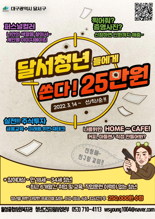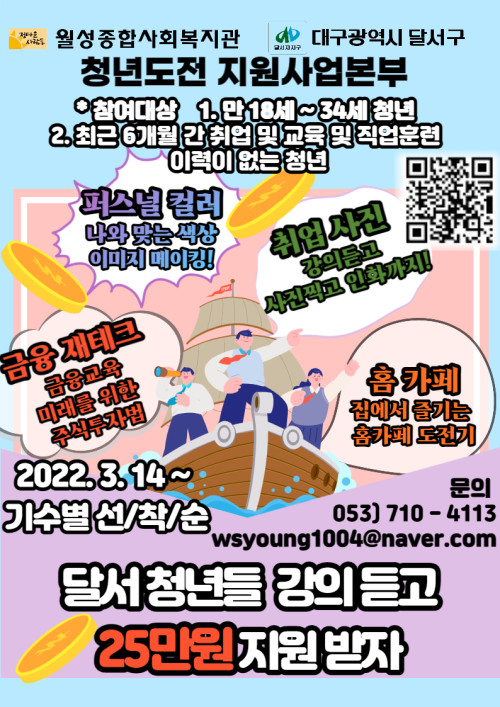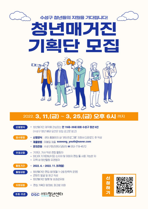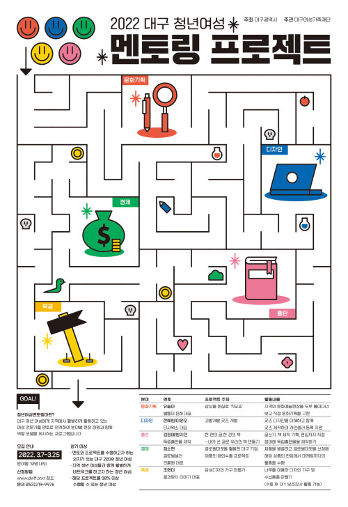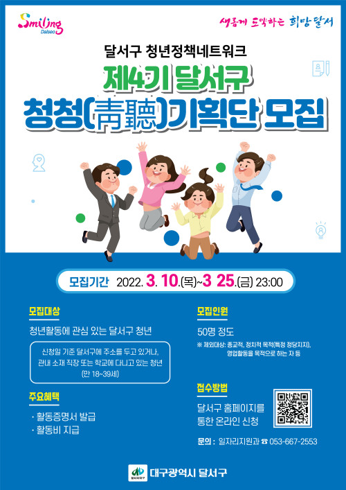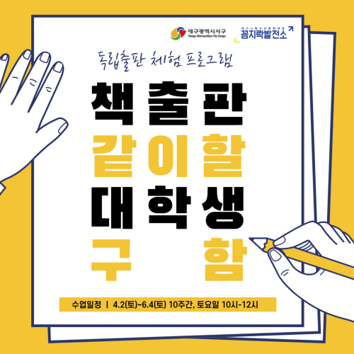 현재 모집 중 검색폼 대구광역시는 해당 페이지를 정보제공을 위한 목적으로 플랫폼을 운영하며, 각 게시글의 내용 및 운영방침에 대한 책임을 지지 않습니다. 대구광역시청년센터 사업 모아보기 전체보기 분야 : 전체 지원사업 채용/인턴/알바 기자단/서포터즈/자원봉사 공모전 교육/강연/토론 축제/공연/전시 커뮤니티활동 기타 정렬 : 전체 신규등록순 모집마감순 상태 : 전체 진행중 종료 기간 설정 검색 검색어 입력 꿀정보등록 누구나 쉽고 빠르게 청년정보를 등록하여 홍보할 수 있습니다. 전체선택 종료 수성구청년센터 진짜 내 목소리를 찾는 면접 스피치 노하우 수성구청년센터 ~ 2022.03.26 종료 2022 청년여성 멘토링 프로젝트 사업 멘티 모집 공고 주최 : 대구광역시 / 주관 : 대구여성가족재단 ~ 2022.03.25 종료 {추가모집}만19세-34세 미취업 청년을 위한 소셜다이닝 청년식탁 월성종합사회복지관 청년베이스캠프 ~ 2022.03.25 종료 수성구청년센터 청년매거진 기획단 모집 수성구청년센터 ~ 2022.03.25 종료 <매거진 꼼지> 내가 쓴 글로 독립출판 하기 대구광역시청소년문화의집 꼼지락발전소 ~ 2022.03.25 종료 제4기 달서구 청청기획단 모집 달서구청 ~ 2022.03.25 종료 2022 달서구 청년도전지원사업본부 청년모집 진행 월성종합사회복지관 청년도전지원사업본부 ~ 2022.03.25 종료 2022 청년도전지원사업(feat. 달서구)이 다시 돌아왔다 월성종합사회복지관 청년도전지원사업본부 ~ 2022.03.25 651 652 653 654 655 656 657 658 659 660