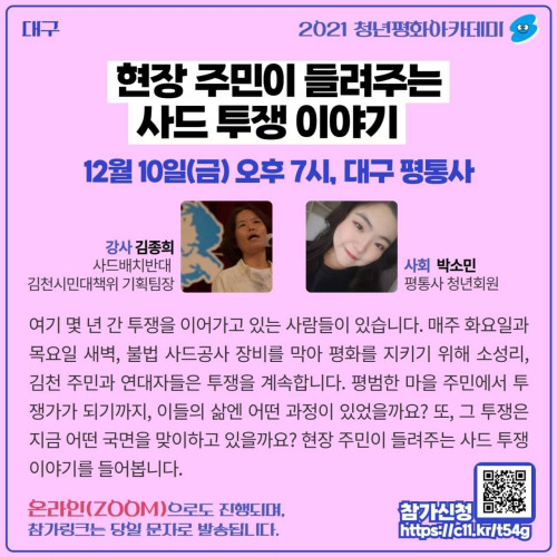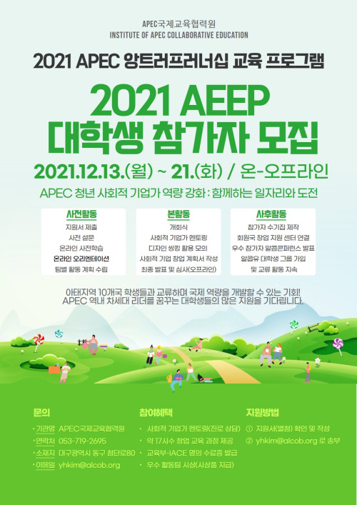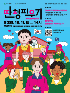 현재 모집 중 검색폼 대구광역시는 해당 페이지를 정보제공을 위한 목적으로 플랫폼을 운영하며, 각 게시글의 내용 및 운영방침에 대한 책임을 지지 않습니다. 대구광역시청년센터 사업 모아보기 전체보기 분야 : 전체 지원사업 채용/인턴/알바 기자단/서포터즈/자원봉사 공모전 교육/강연/토론 축제/공연/전시 커뮤니티활동 기타 정렬 : 전체 신규등록순 모집마감순 상태 : 전체 진행중 종료 기간 설정 검색 검색어 입력 꿀정보등록 누구나 쉽고 빠르게 청년정보를 등록하여 홍보할 수 있습니다. 전체선택 종료 2021청년평화아카데미 - 현장 주민이 들려주는 사드 투쟁 이야기 2021 청년평화아카데미 ~ 2021.12.10 종료 2021 청년부채 문제 해결 순회 토론회 in 대구 광주청년지갑트레이닝센터 ~ 2021.12.10 종료 2021년 APEC 앙트러프러너십 교육 프로그램(AEEP) 참가자 모집 APEC국제교육협력원(IACE) ~ 2021.12.10 종료 [2021대구청년학교 딴길] 딴청피우기 대구청년센터 ~ 2021.12.10 종료 대구지역 청년문제 위기 대응 토론회 개최 대구YMCA ~ 2021.12.09 종료 [자유의지 : 대구 예술•창작인 네트워킹] 아무의 방 ~ 2021.12.08 종료 서울시청년주거상담센터 <첫독립! 집구하기A to Z > 12월 마지막 정기교육 안내 서울시청년주거상담센터 ~ 2021.12.08 종료 대구RE100시민클럽 퀴즈이벤트 대구RE100시민클럽 ~ 2021.12.07 661 662 663 664 665 666 667 668 669 670