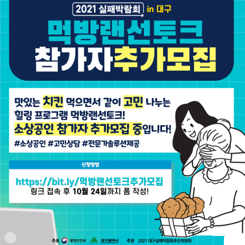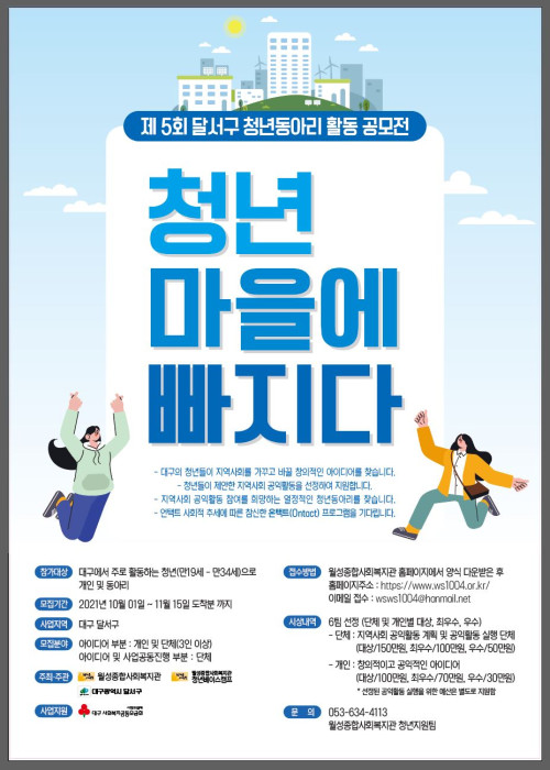 현재 모집 중 검색폼 대구광역시는 해당 페이지를 정보제공을 위한 목적으로 플랫폼을 운영하며, 각 게시글의 내용 및 운영방침에 대한 책임을 지지 않습니다. 대구광역시청년센터 사업 모아보기 전체보기 분야 : 전체 지원사업 채용/인턴/알바 기자단/서포터즈/자원봉사 공모전 교육/강연/토론 축제/공연/전시 커뮤니티활동 기타 정렬 : 전체 신규등록순 모집마감순 상태 : 전체 진행중 종료 기간 설정 검색 검색어 입력 꿀정보등록 누구나 쉽고 빠르게 청년정보를 등록하여 홍보할 수 있습니다. 전체선택 종료 2021 대학문화예술키움 문화 커머스 맞춤형 창업교육 참가자 모집 주최:행복북구문화재단 / 주관:아트큐브 / 후원: 국토교통부, 대구광역시, 대구광역시 북구 ~ 2021.10.26 종료 [북성로 청년 창업] 청년 창업 스타들과의 네트워킹!! 대구 중구 북성로 도시재생현장지원센터 ~ 2021.10.25 종료 <2021 OGP 글로벌서밋 청년 열린정부 정책제안 토론대회> 행정안전부 ~ 2021.10.25 종료 대구 인바운드 여행사 육성을 위한 여행 창업 아이디어 공모전 대구관광재단 ~ 2021.10.25 종료 청소년 노동인권을 위한 대화장, 대구청소년노동인권 조례 ‘생각 나누기’ 대구청년유니온 ~ 2021.10.25 종료 달서구 청년활동 공모전 월성종합사회복지관 ~ 2021.10.25 종료 「2021 실패박람회 in 대구」 온라인 서포터즈 '다시챌린저' 추가모집 대구광역시 ~ 2021.10.24 종료 「2021 실패박람회 in 대구」 먹방랜선토크 소상공인과 치톡치톡 참가자 추가 모집 대구광역시 ~ 2021.10.24 671 672 673 674 675 676 677 678 679 680