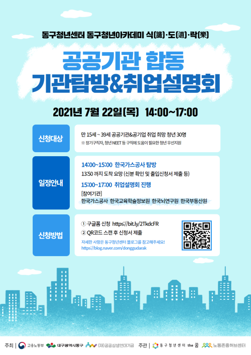 현재 모집 중 검색폼 대구광역시는 해당 페이지를 정보제공을 위한 목적으로 플랫폼을 운영하며, 각 게시글의 내용 및 운영방침에 대한 책임을 지지 않습니다. 대구광역시청년센터 사업 모아보기 전체보기 분야 : 전체 지원사업 채용/인턴/알바 기자단/서포터즈/자원봉사 공모전 교육/강연/토론 축제/공연/전시 커뮤니티활동 기타 정렬 : 전체 신규등록순 모집마감순 상태 : 전체 진행중 종료 기간 설정 검색 검색어 입력 꿀정보등록 누구나 쉽고 빠르게 청년정보를 등록하여 홍보할 수 있습니다. 전체선택 종료 2021년 생애최초 청년창업 지원사업 모집 중소벤처기업부 ~ 2021.07.20 대구광역시청년센터 종료 2021 청년상담소 진로토크 시즌2 6회차 참여자 모집 대구광역시청년센터 ~ 2021.07.20 종료 2021 대구 공공기관 합동 기관탐방&취업설명회 참여자 모집 동구청년센터 the꿈 ~ 2021.07.18 종료 2021 청년커뮤니티지원 '꼼지락 꼼지락' 2기 청년커뮤니티 모집 동구청년센터 the꿈 ~ 2021.07.18 종료 2021 현직자 직무스터디 '구해줘 멘토' 2기 멘토 모집 동구청년센터 the꿈 ~ 2021.07.18 대구광역시청년센터 종료 2021 대구청년학교 딴길2 참가청년 모집(일반형) 대구광역시청년센터 ~ 2021.07.18 종료 2021 뉴스사이트 관리 인턴 모집 사단법인 대한민국청소년의회 ~ 2021.07.18 종료 2021 개발자 커리어 썰전 GDG Daegu ~ 2021.07.16 701 702 703 704 705 706 707 708 709 710