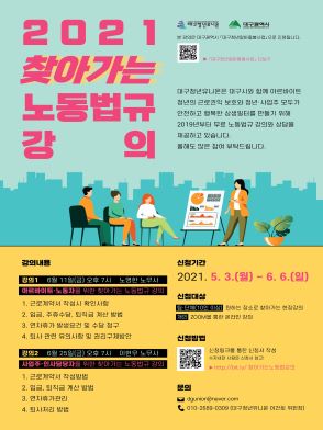 현재 모집 중 검색폼 대구광역시는 해당 페이지를 정보제공을 위한 목적으로 플랫폼을 운영하며, 각 게시글의 내용 및 운영방침에 대한 책임을 지지 않습니다. 대구광역시청년센터 사업 모아보기 전체보기 분야 : 전체 지원사업 채용/인턴/알바 기자단/서포터즈/자원봉사 공모전 교육/강연/토론 축제/공연/전시 커뮤니티활동 기타 정렬 : 전체 신규등록순 모집마감순 상태 : 전체 진행중 종료 기간 설정 검색 검색어 입력 꿀정보등록 누구나 쉽고 빠르게 청년정보를 등록하여 홍보할 수 있습니다. 전체선택 종료 2021 [청년톡톡]MBTI 소확행 집단상담 무료이용자 모집 월성종합사회복지관 ~ 2021.06.24 종료 2021 찾아가는 노동법규 강의 개인·단체 신청 대구청년유니온 ~ 2021.06.24 종료 2021 지역주도형 청년일자리사업 우수사례 공모전 행정안전부 ~ 2021.06.24 대구광역시청년센터 종료 2021 청년상담소 진로토크 시즌2 2회차 참여자 모집 대구광역시청년센터 ~ 2021.06.23 종료 2021 <대구 남성을 위한 여성학 교육> 수강생 모집 대구여성가족재단 ~ 2021.06.23 종료 2021 청년톡톡) 무료 필라테스 요가 이용자 모집 대구청년사회서비스사업단 ~ 2021.06.22 종료 2021 <청년노동전문가 양성과정 “노동법심화과정”> 사단법인유니온센터 ~ 2021.06.21 종료 2021 CLUTCH THE ENERGY CAMP 에너지분야 아이디어톤 캠퍼 모집 대구창조경제혁신센터 ~ 2021.06.21 701 702 703 704 705 706 707 708 709 710