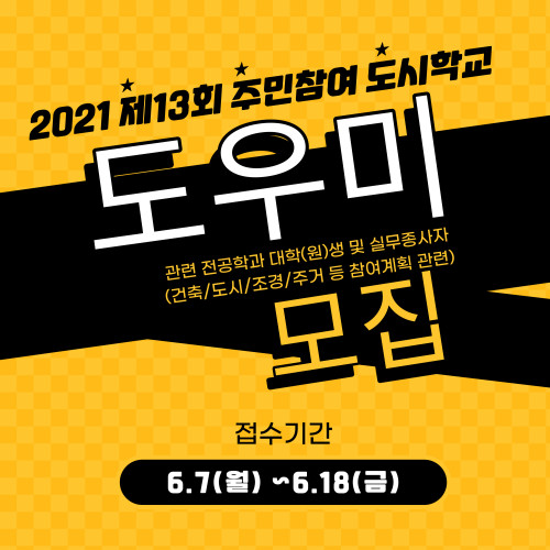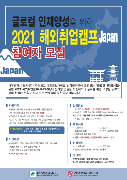 현재 모집 중 검색폼 대구광역시는 해당 페이지를 정보제공을 위한 목적으로 플랫폼을 운영하며, 각 게시글의 내용 및 운영방침에 대한 책임을 지지 않습니다. 대구광역시청년센터 사업 모아보기 전체보기 분야 : 전체 지원사업 채용/인턴/알바 기자단/서포터즈/자원봉사 공모전 교육/강연/토론 축제/공연/전시 커뮤니티활동 기타 정렬 : 전체 신규등록순 모집마감순 상태 : 전체 진행중 종료 기간 설정 검색 검색어 입력 꿀정보등록 누구나 쉽고 빠르게 청년정보를 등록하여 홍보할 수 있습니다. 전체선택 대구광역시청년센터 종료 2021 [제2021-04호] 대구광역시청년센터 인재채용 대구광역시청년센터 ~ 2021.06.20 종료 2021 청년정책 알리미 ‘Youngever' 모집 대구동구청년센터 the꿈 ~ 2021.06.20 종료 2021 제13기 주민참여 도시학교 도우미 모집 대구 창의도시재생지원센터 ~ 2021.06.18 종료 2021 대한민국 캠핑대전 캠핑대전 사무국 ~ 2021.06.18 종료 2021 일본취업캠프 참여자 모집 달서구청 일자리지원과 ~ 2021.06.18 종료 2021 가치하는 대구, 해결하는 대구! 대구지역문제해결플랫폼 ~ 2021.06.16 대구광역시청년센터 종료 2021 청년상담소 진로토크 시즌2 1회차 참여자 모집 대구광역시청년센터 ~ 2021.06.16 종료 2021 청년톡톡 [MBTI 소확행 집단상담] 무료 이용자 모집 월성종합사회복지관 ~ 2021.06.14 701 702 703 704 705 706 707 708 709 710
