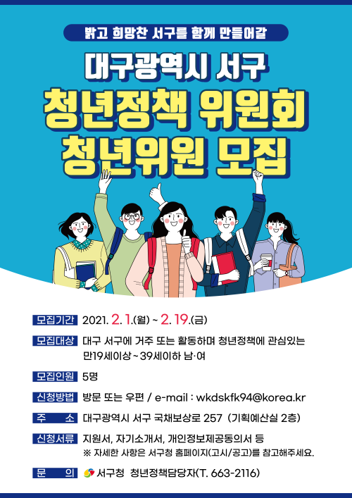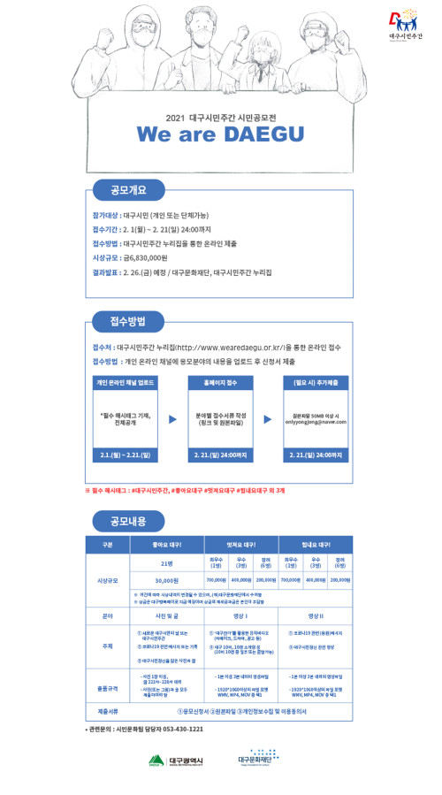 현재 모집 중 검색폼 대구광역시는 해당 페이지를 정보제공을 위한 목적으로 플랫폼을 운영하며, 각 게시글의 내용 및 운영방침에 대한 책임을 지지 않습니다. 대구광역시청년센터 사업 모아보기 전체보기 분야 : 전체 지원사업 채용/인턴/알바 기자단/서포터즈/자원봉사 공모전 교육/강연/토론 축제/공연/전시 커뮤니티활동 기타 정렬 : 전체 신규등록순 모집마감순 상태 : 전체 진행중 종료 기간 설정 검색 검색어 입력 꿀정보등록 누구나 쉽고 빠르게 청년정보를 등록하여 홍보할 수 있습니다. 전체선택 대구광역시청년센터 종료 2021 대구시청년센터 시민주간이벤트 대구광역시청년센터 ~ 2021.02.28 종료 2021 해결사(해외아동결연을 통해 세상을 변화시키는 사람들) 모집[굿네이버스 대구경북본부] 굿네이버스 대구경북본부 ~ 2021.02.26 종료 2021 청년마을 만들기 지원사업 행정안전부 ~ 2021.02.26 종료 2021 재도전성공패키지 참여 (예비)재창업자 모집 중소벤처기업부 / 대구창조경제혁신센터 ~ 2021.02.25 종료 2021 대학생자원봉사동아리 한빛 모집[굿네이버스 대구경북본부] 굿네이버스 대구경북본부 ~ 2021.02.24 종료 2021 소통의 어려움과 비대면 회의 도구에 관한 강연 어울리 ~ 2021.02.23 종료 2021 대구시민주간 시민공모전 대구시 문화예술정책과 / 대구문화재단 ~ 2021.02.21 종료 2021 대구광역시 서구 청년정책위원회 위원 모집 ! 대구광역시 서구청 ~ 2021.02.19 731 732 733 734 735 736 737 738 739 740