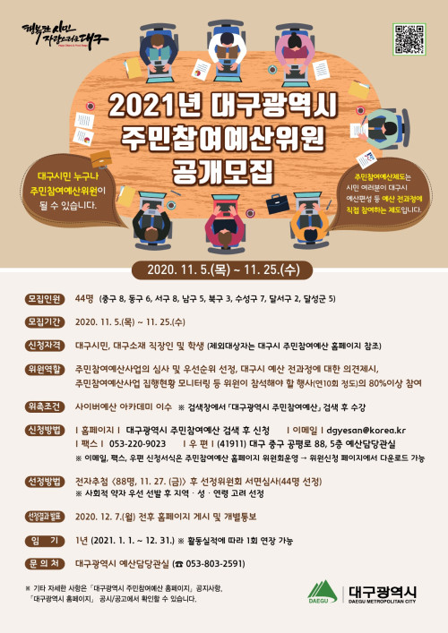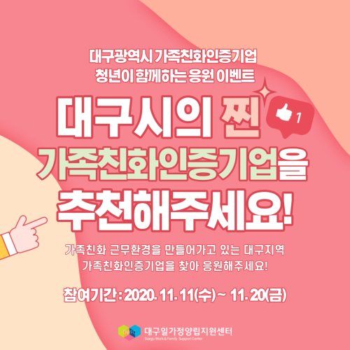 현재 모집 중 검색폼 대구광역시는 해당 페이지를 정보제공을 위한 목적으로 플랫폼을 운영하며, 각 게시글의 내용 및 운영방침에 대한 책임을 지지 않습니다. 대구광역시청년센터 사업 모아보기 전체보기 분야 : 전체 지원사업 채용/인턴/알바 기자단/서포터즈/자원봉사 공모전 교육/강연/토론 축제/공연/전시 커뮤니티활동 기타 정렬 : 전체 신규등록순 모집마감순 상태 : 전체 진행중 종료 기간 설정 검색 검색어 입력 꿀정보등록 누구나 쉽고 빠르게 청년정보를 등록하여 홍보할 수 있습니다. 전체선택 종료 2020 달빛동맹 달빛소나기 영남일보 ~ 2020.11.25 대구광역시청년센터 종료 2020 YES!대구 토크콘서트_코로나 19 사업장과 청년 일자리에 방향 모색 대구광역시청년센터 ~ 2020.11.25 종료 2021년 제6기 주민참여예산위원 공개모집 !! 대구광역시 예산담당관 ~ 2020.11.25 종료 2020 카페 원데이클래스&창업네트워킹 대구동구청년센터 the꿈 ~ 2020.11.23 종료 2020 로컬게더링 경북 컨퍼런스 참가자 모집 경북경제진흥원, 경주시, 어반플레이 ~ 2020.11.22 대구광역시청년센터 종료 2020 다온나그래 기획프로그램<사부작클래스 11월> 수강생 모집 공고 대구광역시청년센터 ~ 2020.11.22 대구광역시청년센터 종료 2020 전국청년센터 상생포럼 개최 안내 대구광역시청년센터 ~ 2020.11.20 종료 2020 대구광역시 가족친화인증기업 응원이벤트 대구일가정양립지원센터 ~ 2020.11.20 731 732 733 734 735 736 737 738 739 740