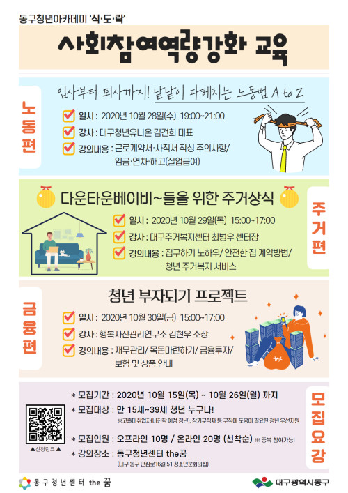 현재 모집 중 검색폼 대구광역시는 해당 페이지를 정보제공을 위한 목적으로 플랫폼을 운영하며, 각 게시글의 내용 및 운영방침에 대한 책임을 지지 않습니다. 대구광역시청년센터 사업 모아보기 전체보기 분야 : 전체 지원사업 채용/인턴/알바 기자단/서포터즈/자원봉사 공모전 교육/강연/토론 축제/공연/전시 커뮤니티활동 기타 정렬 : 전체 신규등록순 모집마감순 상태 : 전체 진행중 종료 기간 설정 검색 검색어 입력 꿀정보등록 누구나 쉽고 빠르게 청년정보를 등록하여 홍보할 수 있습니다. 전체선택 대구광역시청년센터 종료 2020 다모디라 시즌8「온라인 네트워킹 데이」 대구광역시청년센터 ~ 2020.10.26 종료 2020 동구청년아카데미 '식·도·락' 사회참여 역량강화교육 대구동구청년센터 the꿈 ~ 2020.10.26 종료 '라떼는 이랬으면 좋겠어' 인문학캠프 제천간디학교 ~ 2020.10.25 종료 2020 '멘토식탁' 참여자 모집 - 특별판(추가모집), 9차, 10차 대구동구청년센터 the꿈 ~ 2020.10.25 종료 2020 도시에 사는 존재들 -가로수 사진 공모전 팀 트리트먼트 ~ 2020.10.25 종료 2020 양성평등 문화확산 콘텐츠 공모전 대구광역시/대구여성가족재단 ~ 2020.10.25 종료 2020 '커뮤니티 토론회' 지원 사업에 참여할 커뮤니티/토론코디네이터를 모집합니다. 대구경북연구원 ~ 2020.10.23 종료 2020 'Clutch Club' 센터인증 창업동아리! 활동비 지원 대구창조경제혁신센터 ~ 2020.10.22 741 742 743 744 745 746 747 748 749 750