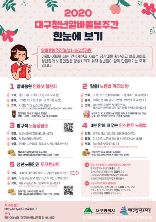 현재 모집 중 검색폼 대구광역시는 해당 페이지를 정보제공을 위한 목적으로 플랫폼을 운영하며, 각 게시글의 내용 및 운영방침에 대한 책임을 지지 않습니다. 대구광역시청년센터 사업 모아보기 전체보기 분야 : 전체 지원사업 채용/인턴/알바 기자단/서포터즈/자원봉사 공모전 교육/강연/토론 축제/공연/전시 커뮤니티활동 기타 정렬 : 전체 신규등록순 모집마감순 상태 : 전체 진행중 종료 기간 설정 검색 검색어 입력 꿀정보등록 누구나 쉽고 빠르게 청년정보를 등록하여 홍보할 수 있습니다. 전체선택 종료 2020 대구북구 인구정책 아이디어 공모 대구 북구청 ~ 2020.09.29 종료 2020 대구청년알바돌봄주간 개최 안내 청년정책과X대구청년유니온 ~ 2020.09.27 종료 2020 한-아프리카 청년포럼 대구 지역포럼 한·아프리카재단 ~ 2020.09.25 종료 2020 대구희망지원금 지급 대구광역시 ~ 2020.09.25 대구광역시청년센터 종료 2020 세습사회를 뛰어넘는 더 공정한 계획 대구광역시청년센터 ~ 2020.09.24 종료 2020 동구청년아카데미 '식도락' 청년기획단 취업특강 - 온라인 상담 콘서트 동구청년센터 the꿈 ~ 2020.09.24 종료 2020 9월 메이커 월간 메이커스페이스 12개소 공동 개최 ~ 2020.09.22 종료 평화뉴스 기자 공채(~9.20) <주>평화뉴스 ~ 2020.09.20 741 742 743 744 745 746 747 748 749 750