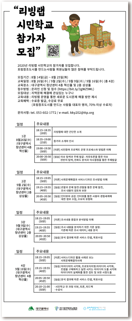 현재 모집 중 검색폼 대구광역시는 해당 페이지를 정보제공을 위한 목적으로 플랫폼을 운영하며, 각 게시글의 내용 및 운영방침에 대한 책임을 지지 않습니다. 대구광역시청년센터 사업 모아보기 전체보기 분야 : 전체 지원사업 채용/인턴/알바 기자단/서포터즈/자원봉사 공모전 교육/강연/토론 축제/공연/전시 커뮤니티활동 기타 정렬 : 전체 신규등록순 모집마감순 상태 : 전체 진행중 종료 기간 설정 검색 검색어 입력 꿀정보등록 누구나 쉽고 빠르게 청년정보를 등록하여 홍보할 수 있습니다. 전체선택 종료 2020 리빙랩 시민학교 참가자 모집 대구광역시/대구테크노파크(포럼 창조도시를 만드는 사람들) ~ 2020.08.25 대구광역시청년센터 종료 2020 청년상담소 진로토크 참여 모집 대구광역시 청년센터 ~ 2020.08.25 종료 [대구웹툰캠퍼스] 문화가 있는 웹툰 체험교실 대구디지털산업진흥원 ~ 2020.08.24 종료 2020 [대구콘텐츠코리아랩]D-콘텐츠메이킹 드로잉굿즈 제작 과정 창작자 모집 대구디지털산업진흥원 ~ 2020.08.24 종료 2020 D-콘텐츠메이킹 모바일앱 UX/UI 디자인 과정 창작자 모집 대구디지털산업진흥원 ~ 2020.08.24 종료 2020 [대구콘텐츠 코리아랩] D-콘텐츠메이킹 디지털 캘리그라피 과정 창작자 모집 대구디지털산업진흥원 ~ 2020.08.24 종료 2020 [대구콘텐츠코리아랩] D-콘텐츠메이킹 모션그래픽 과정 창작자 모집 대구디지털산업진흥원 ~ 2020.08.24 종료 2020 [대구콘텐츠코리아랩]D-콘텐츠메이킹 라탄공예 과정 창작자 모집 대구디지털산업진흥원 ~ 2020.08.24 751 752 753 754 755 756 757 758 759 760