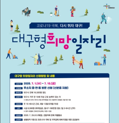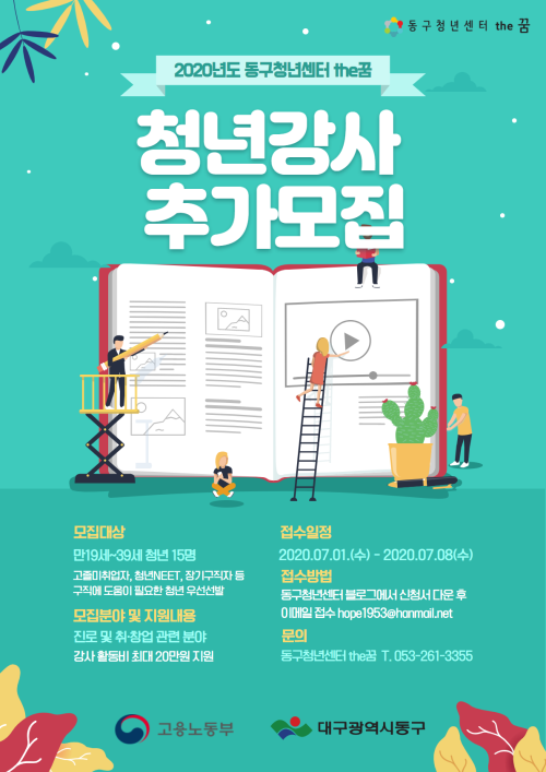 현재 모집 중 검색폼 대구광역시는 해당 페이지를 정보제공을 위한 목적으로 플랫폼을 운영하며, 각 게시글의 내용 및 운영방침에 대한 책임을 지지 않습니다. 대구광역시청년센터 사업 모아보기 전체보기 분야 : 전체 지원사업 채용/인턴/알바 기자단/서포터즈/자원봉사 공모전 교육/강연/토론 축제/공연/전시 커뮤니티활동 기타 정렬 : 전체 신규등록순 모집마감순 상태 : 전체 진행중 종료 기간 설정 검색 검색어 입력 꿀정보등록 누구나 쉽고 빠르게 청년정보를 등록하여 홍보할 수 있습니다. 전체선택 종료 2020 북구 청년정책 아이디어 제안대회 '청정 북소리: 청년, 북구를 두드리다!' 대구광역시 북구 ~ 2020.07.12 종료 2020 대구형 희망일자리 참여자 모집 대구광역시 ~ 2020.07.10 종료 2020 청년참여단.온라인청년패널 참여자 모집 국무조정실 청년정책추진단장 ~ 2020.07.09 종료 2020 방천문화기획학교 수강생을 모집 인디053 ~ 2020.07.08 종료 2020 동구청년센터 the꿈 청년강사 추가모집 동구청년센터 the꿈 ~ 2020.07.08 종료 2020 힘내요 대구, 댄스 챌린지 시민공모전 대구문화재단 ~ 2020.07.05 종료 2020 대한민국의회행정박람회 <자기주장발표대회 & 토크콘서트> 발표자, 청중 모집 (~7/4) 대한민국청소년의회 ~ 2020.07.04 종료 2020 공유대구 포럼<코로나19 이후 새로운 공유의 시대> 공유대구 ~ 2020.07.01 761 762 763 764 765 766 767 768 769 770