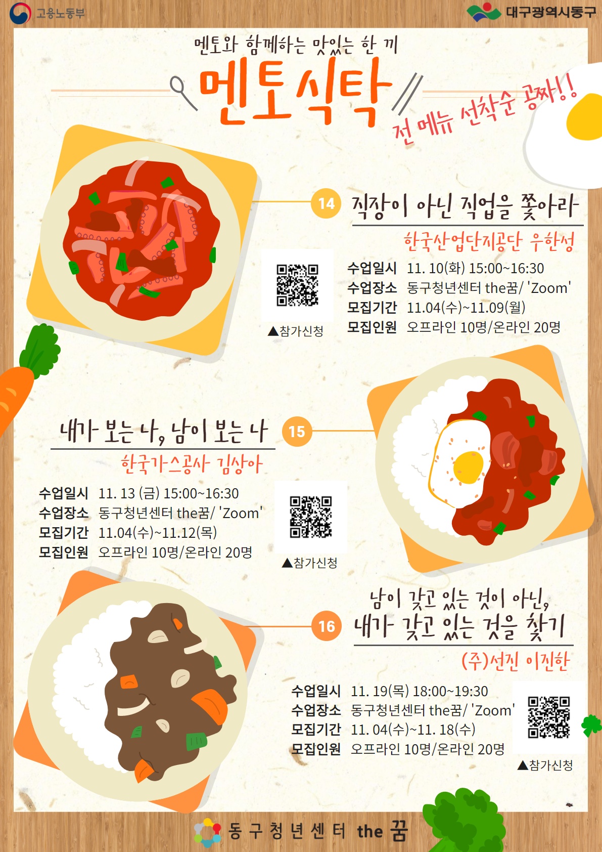 여러분은 멘토와 맛있는 한 끼 식사를 즐겨주세요!