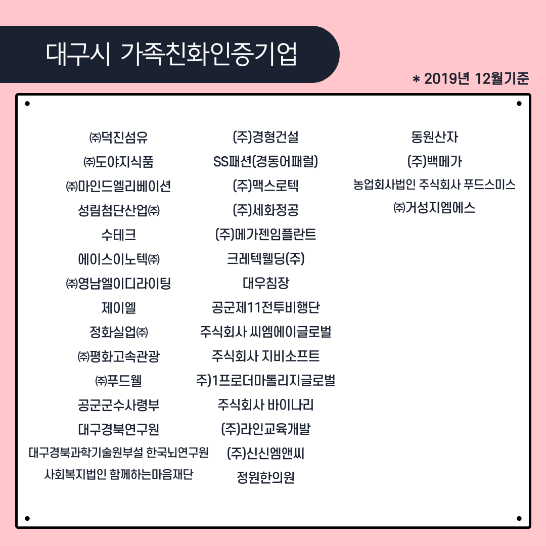 2020 대구광역시 가족친화인증기업 응원이벤트작성자 : 젊프 작성일 : 20-11-12