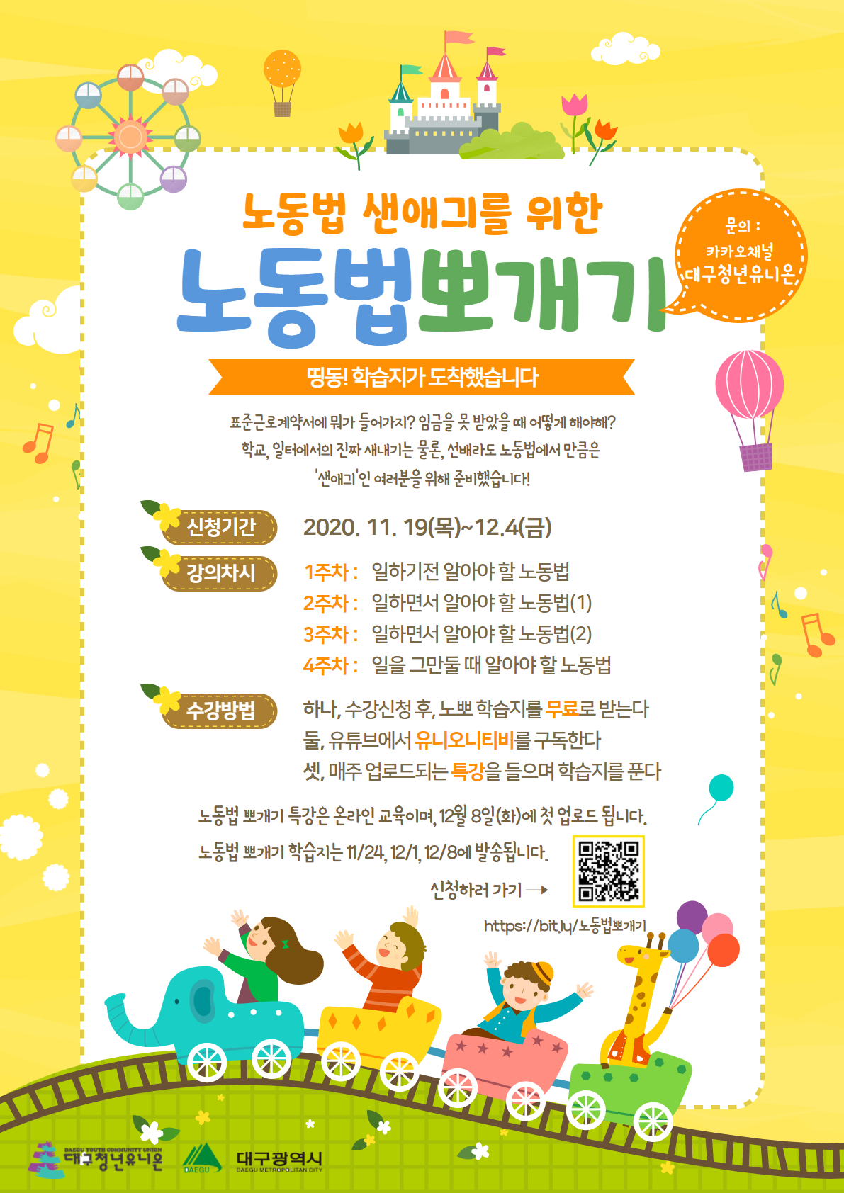 이 사업은 대구광역시 대구청년알바돌봄사업의 지원을 받아 진행됩니다.