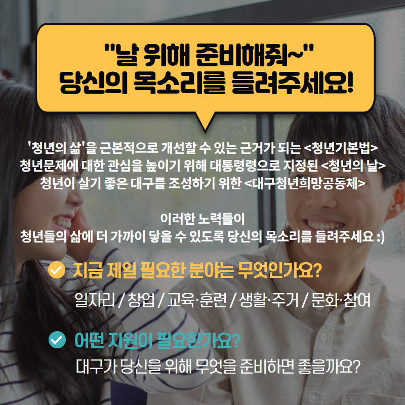 청년 여러분들이 대구청년희망공동체에 바라는 목소리를 전달해주세요!