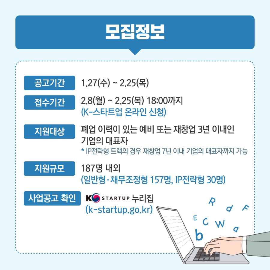 [신청대상] 폐업 이력이 있는 예비 또는 재창업 3년 이내인 기업의 대표자