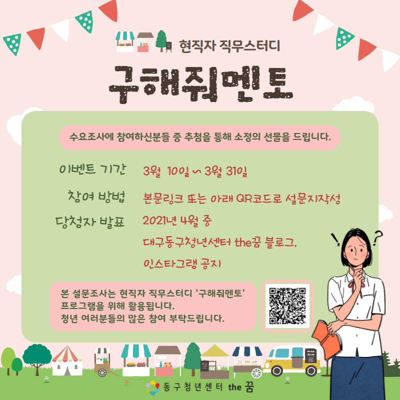 동구청년센터 the꿈에서 현직자 직무스터디 '구해줘멘토' 수요조사 이벤트를 진행 중입니다!