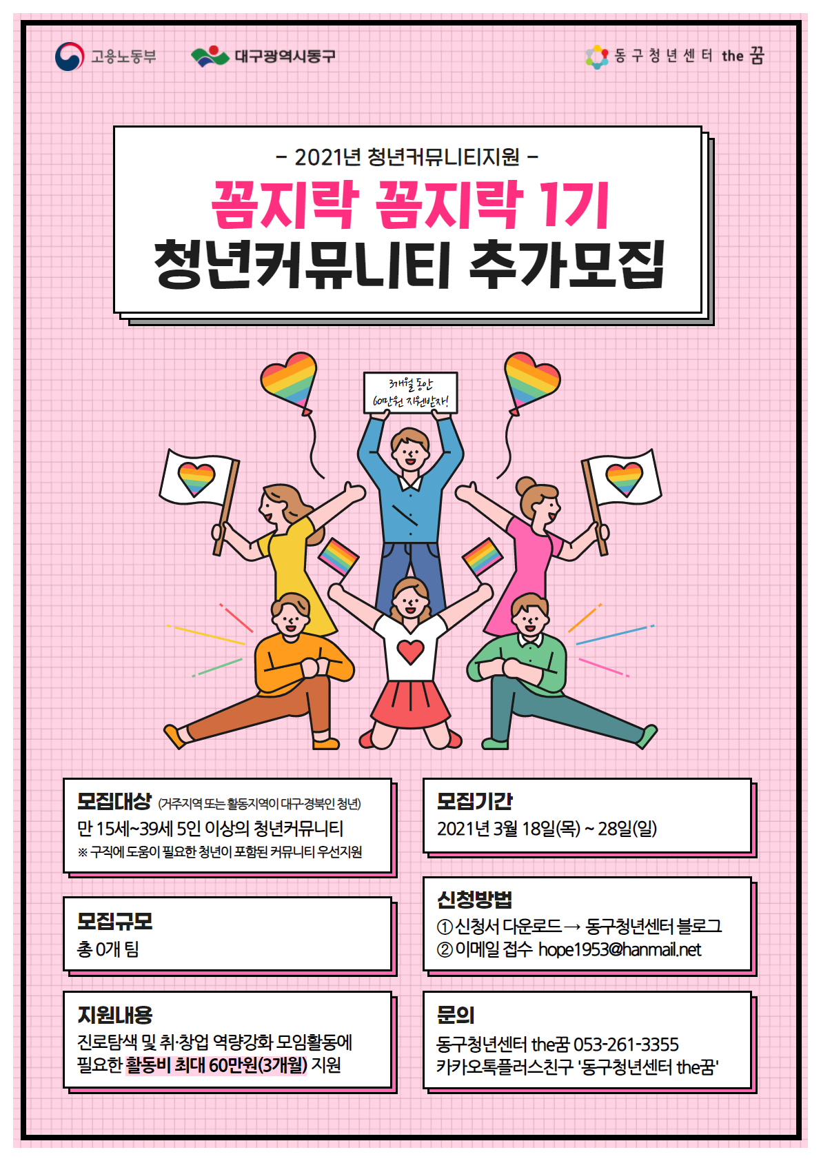 동구청년센터 the꿈 053-261-3355, 7~8 / 카카오톡플러스친구 ‘동구청년센터 the꿈’