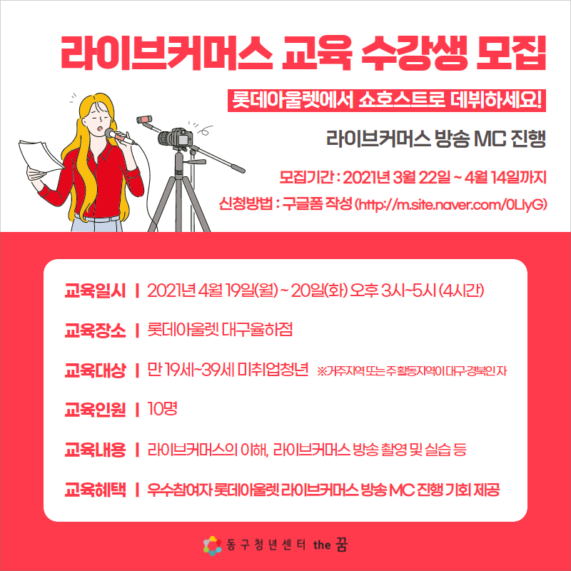2021 동구청년센터 the꿈 라이브커머스 교육 수강생 모집작성자 : 박소진 작성일 : 21-03-23