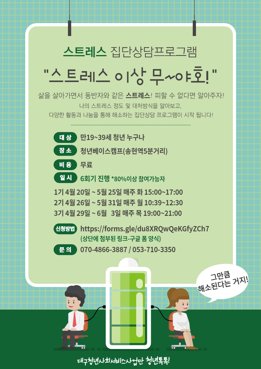 스트레스 집단상담외에도 다양한 프로그램이 있으니 관심 많이 가져주세요 :D