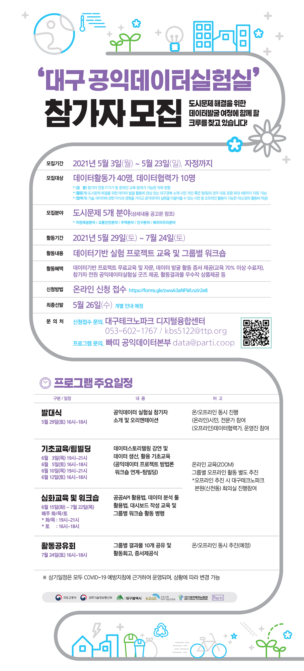 2021 공익데이터실험실 참가자 모집 [대구TP]작성자 : 고영은 작성일 : 21-05-11