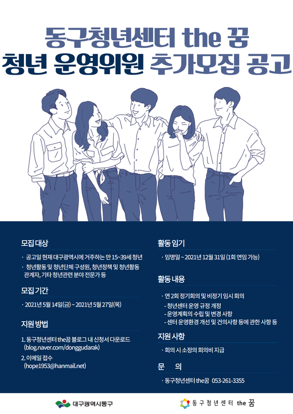 2021 동구청년센터the꿈 청년운영위원 추가모집작성자 : 박소진 작성일 : 21-05-13