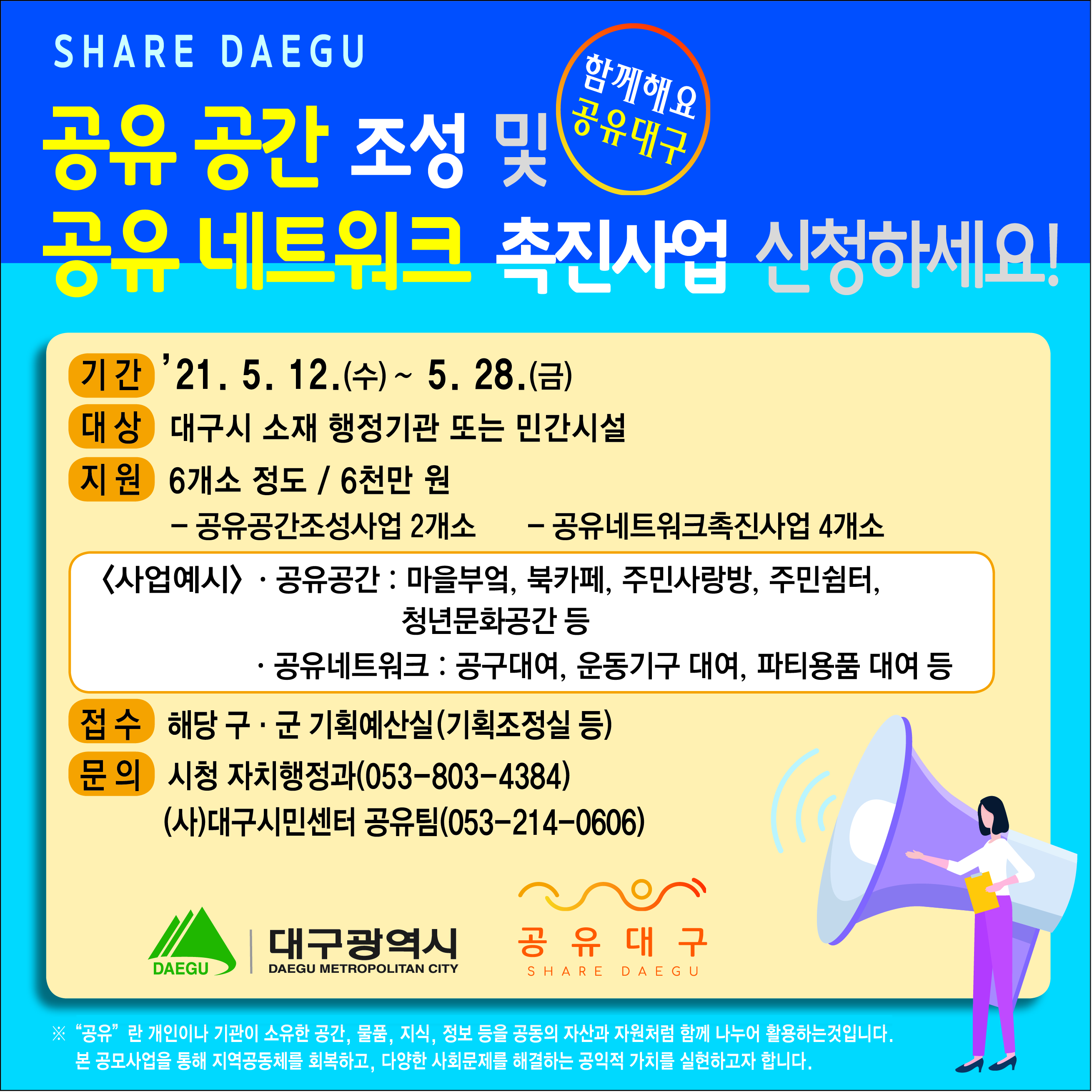 2021 공유활동을 지원합니다! 공유공간 조성 및 공유 네트워크 촉진사업작성자 : 정민경 작성일 : 21-05-14