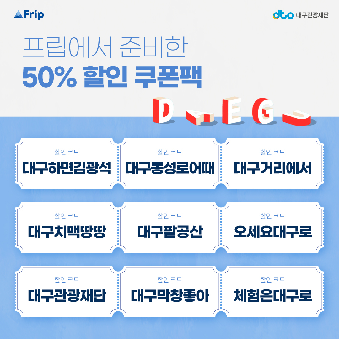 ▶프립(할인코드가 대구하면김광석,대구동성로어때 등 여러가있습니다.)