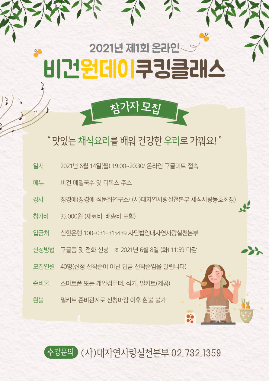 2021 온라인 제1회 비건원데이쿠킹클래스